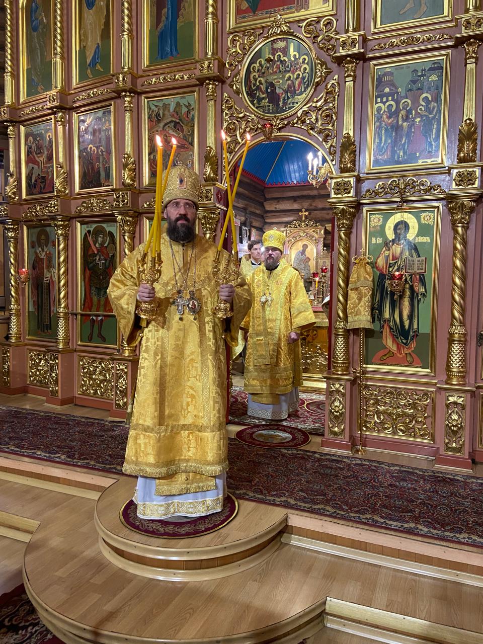 За Литургией Его Преосвященству сослужили секретарь Норильской епархии, настоятель кафедрального собора иконы Божией Матери «Всех скорбящих Радость» г. Норильска иеромонах Герман (Мельников); духовник Норильской епархии протоиерей Владимир Иванов; ключарь кафедрального собора иконы Божией Матери «Всех скорбящих Радость» г. Норильска иерей Иоанн Помазкин.