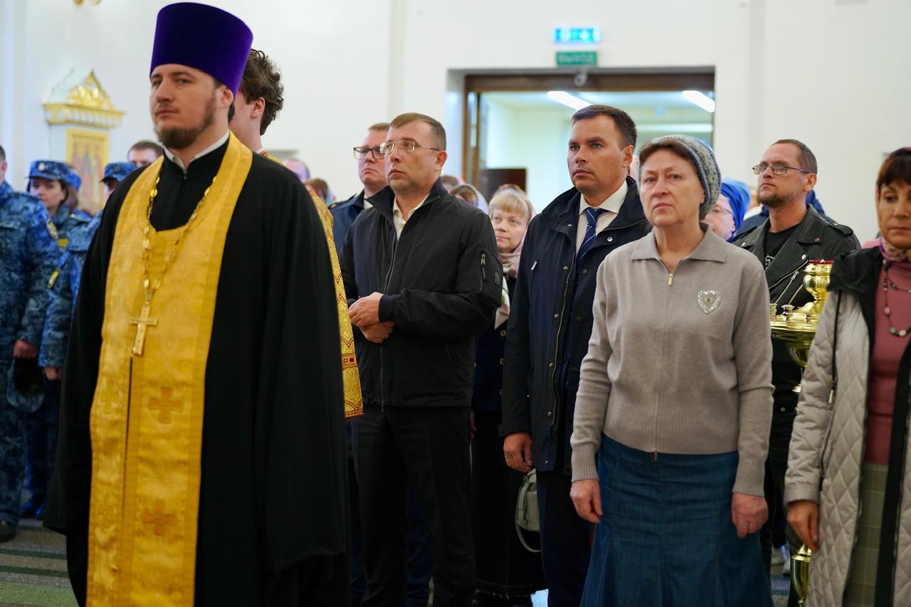 В богослужении участвовали: секретарь Норильской епархии, настоятель кафедрального собора иконы Божией Матери «Всех скорбящих Радость» г. Норильска иеромонах Герман (Мельников); благочинный Норильского округа, настоятель храма новомучеников и исповедников Церкви Русской г. Норильска иерей Геннадий Дубинко; благочинный Туруханского округа, настоятель храма благоверного князя Александра Невского г. Игарки иерей Константин Черненко; благочинный Свято-Троицкого монастыря с. Туруханска иеромонах Феодор (Кузнецов); руководитель отдела Норильской епархии по тюремному служению, настоятель храма Преображения Господня в р-не Кайеркан г. Норильска иерей Александр Попов; руководитель отдела Норильской епархии по делам молодежи, благочинный кафедрального собора г. Норильска иерей Димитрий Прохоров; духовенство Норильской епархии.