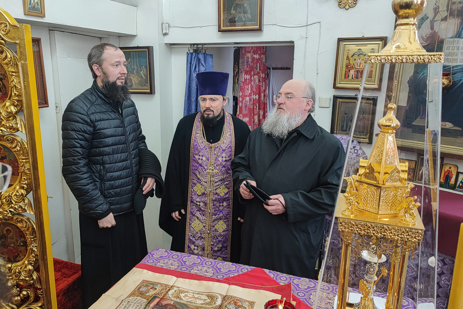 Архиереи Красноярской митрополии поселили храм Введения Пресвятой Богородицы во храм в городе Дудинке, где осмотрели помещения прихода и поклонились святыням храма.
