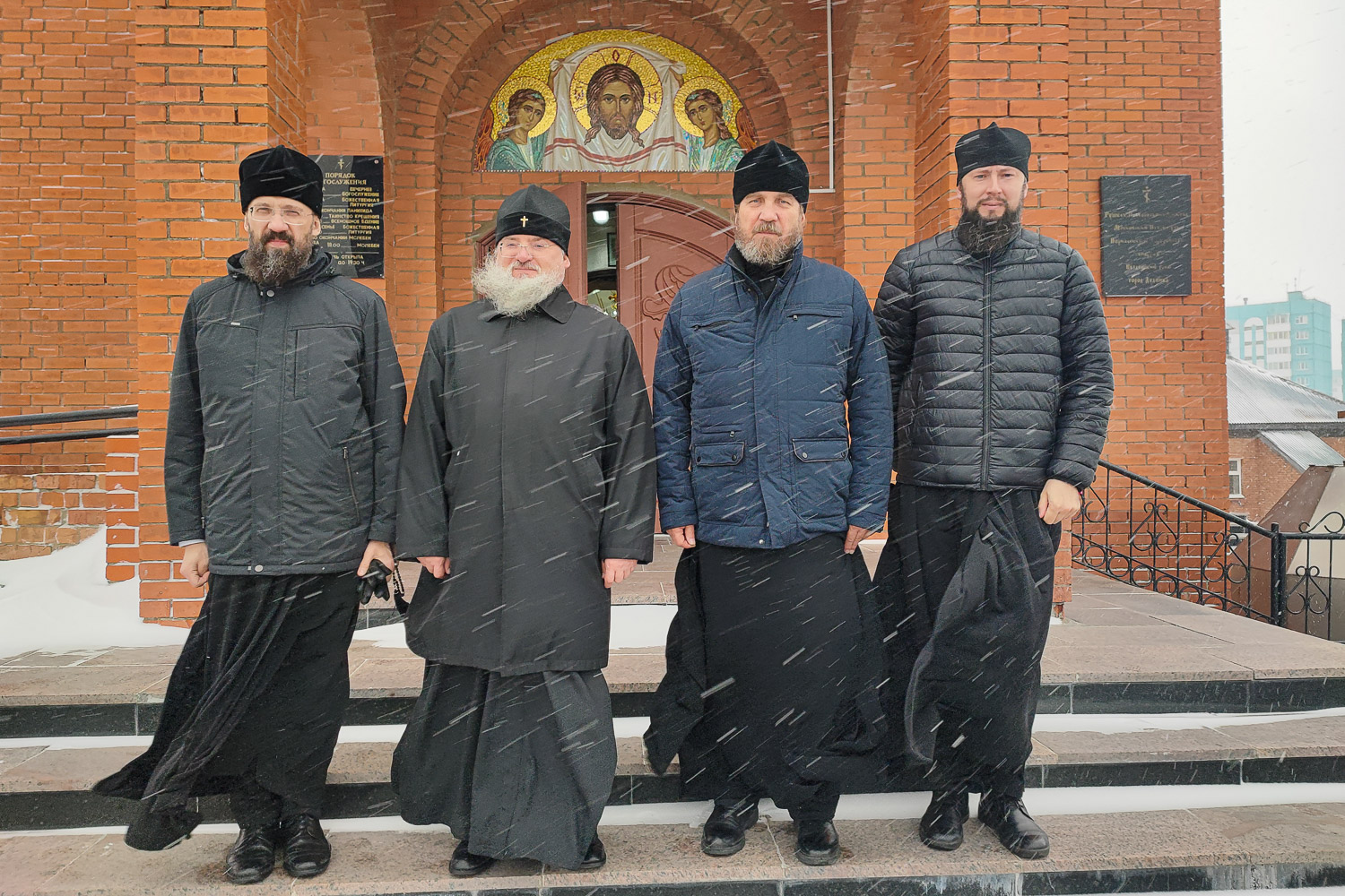 Митрополита Никиту в рабочей поездке сопровождают: клирик храма святителя Николая города Красноярска протоиерей Максим Немыченков; личный секретарь-референт главы Красноярской митрополии, штатный клирик храма Иоанна Предтечи города Красноярска иерей Владимир Лужков.