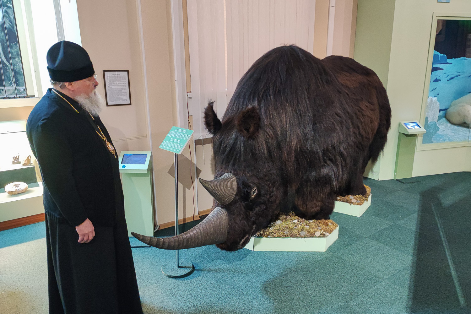 Затем делегация посетила Таймырский краеведческий музей. Архиереев встретила исполняющая обязанности заместителя Главы Таймырского Долгано-Ненецкого муниципального района по социальной политике Ирина Валерьевна Губкина.