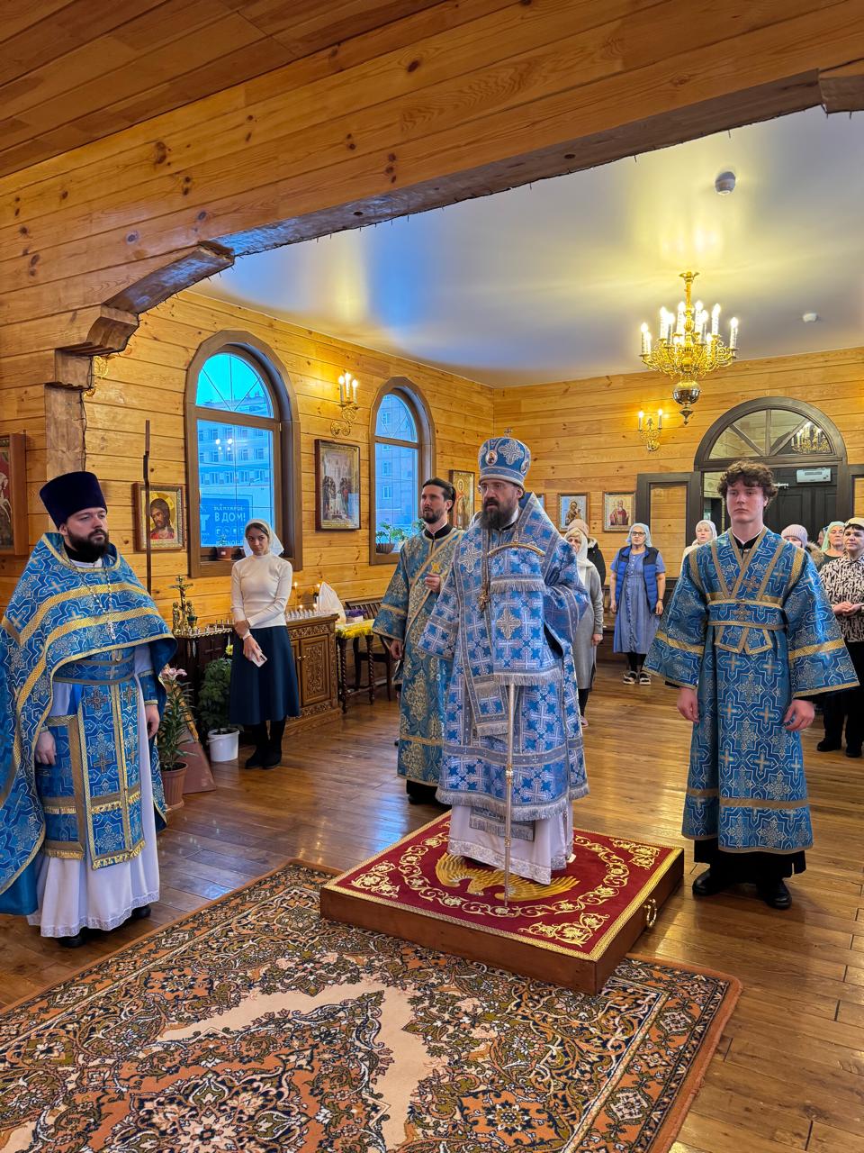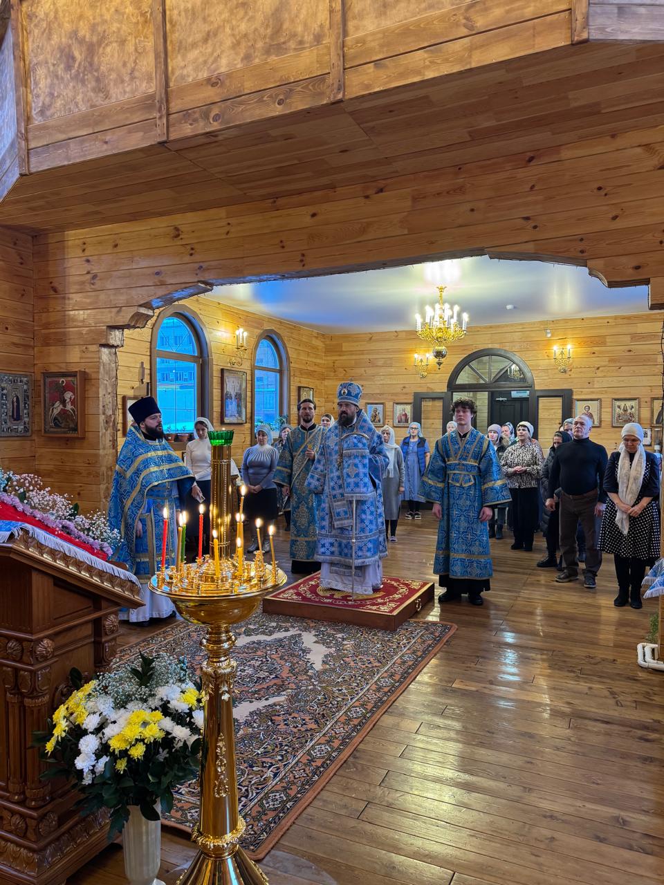 4 ноября 2025 года, в праздник Казанской иконы Божией Матери, Преосвященнейший Агафангел, епископ Норильский и Туруханский, совершил Божественную литургию в храме Преображения Господня в районе Кайеркан города Норильска.
