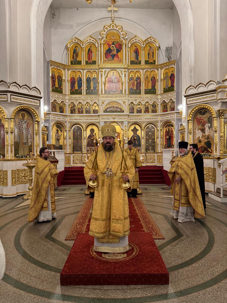За Литургией Его Преосвященству сослужили духовник Норильской епархии протоиерей Владимир Иванов и ключарь кафедрального собора иконы Божией Матери «Всех скорбящих Радость» г. Норильска иерей Иоанн Помазкин.