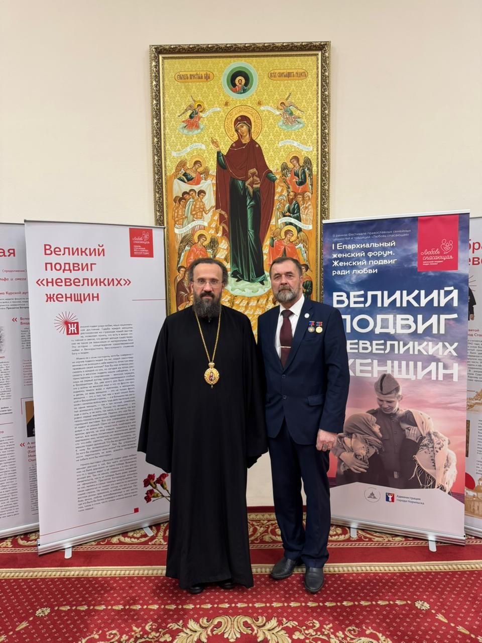 8 ноября 2025 года в Норильском епархиальном управлении состоялась встреча епископа Норильского и Туруханского Агафангела с первым заместителем председателя Общественного совета при Отделе МВД России по городу Норильску Юрием Александровичем Кононченко.