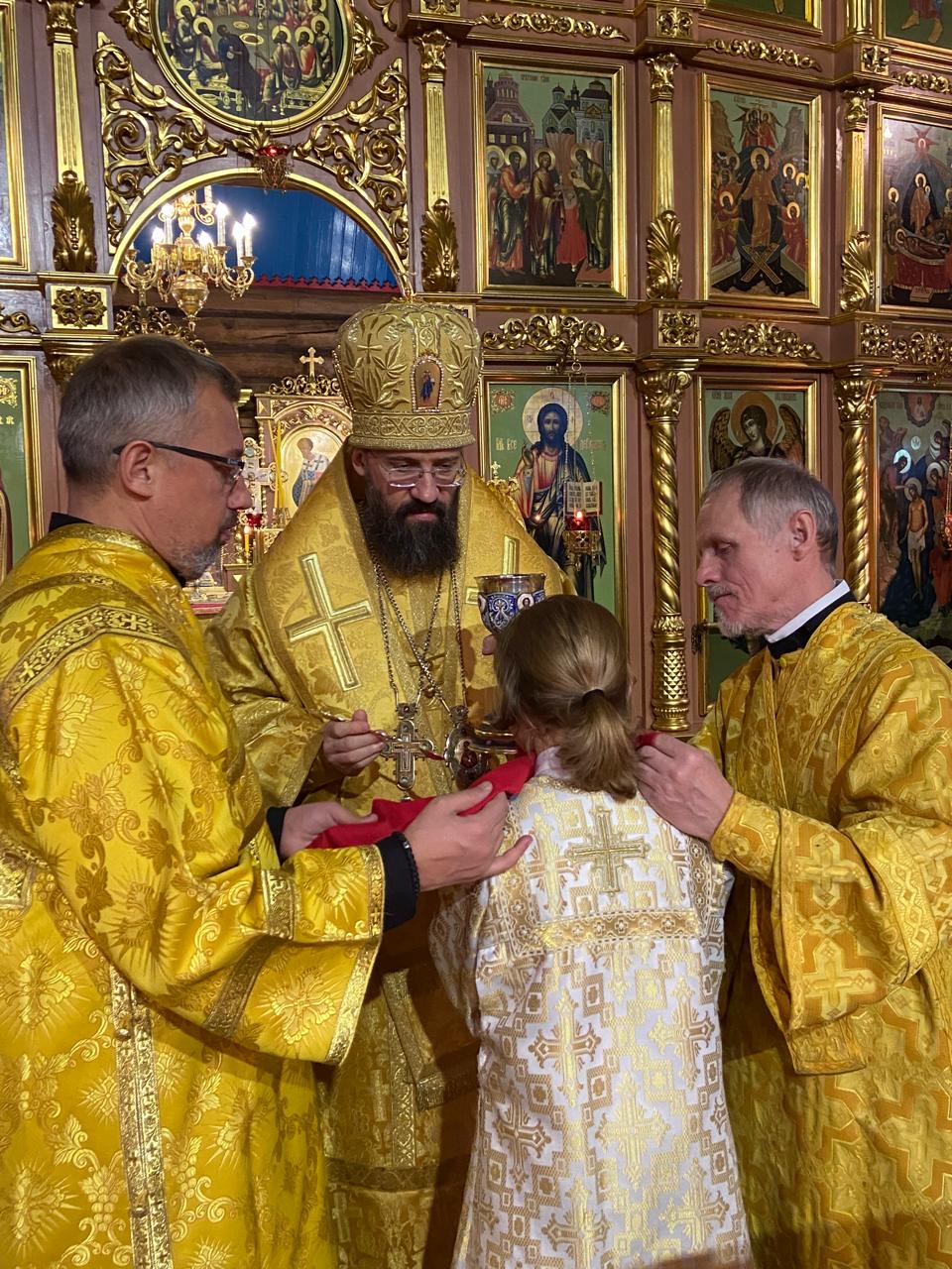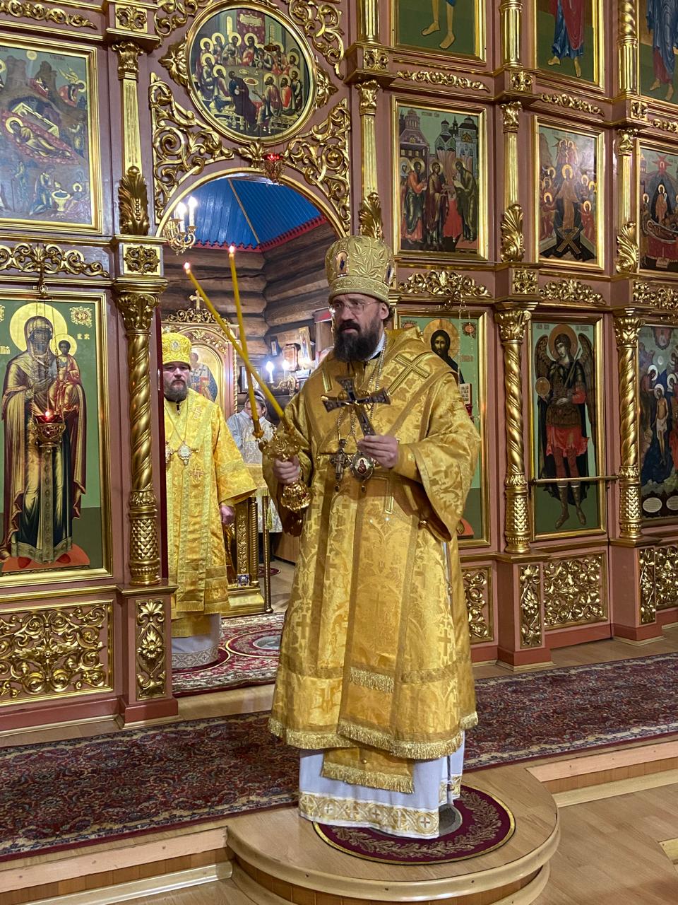 За Литургией архиереям сослужили руководитель отдела религиозного образования и катехизации Нарьян-Марской епархии иерей Александр Симора и руководитель отдела Норильской епархии по тюремному служению иерей Александр Попов.