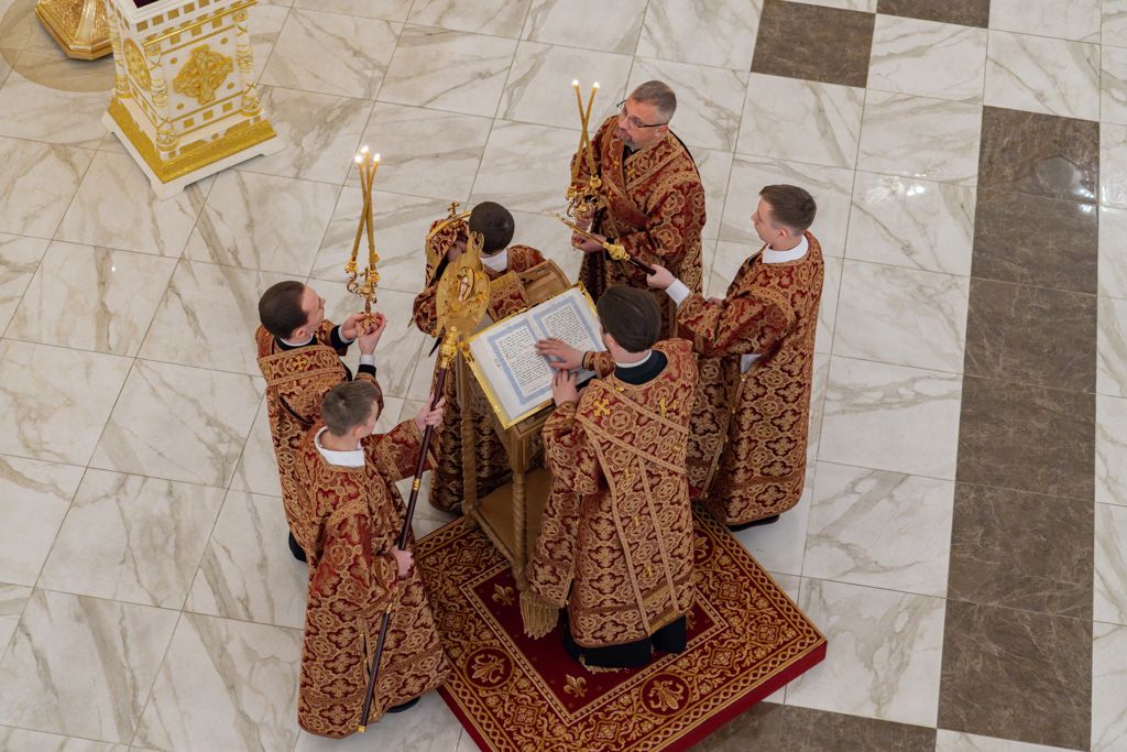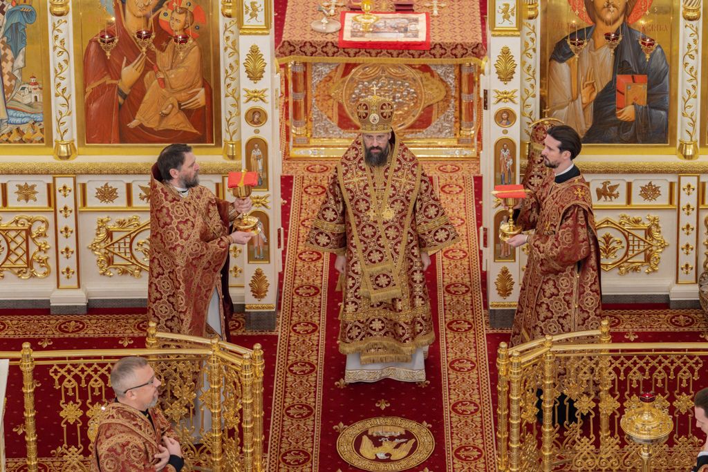 За Литургией Его Преосвященству сослужили: секретарь Норильской епархии, настоятель храма великомученицы Варвары в районе Талнах города Норильска иеромонах Герман (Мельников); благочинный Норильского округа, настоятель храма новомучеников и исповедников Церкви Русской в г. Норильске иерей Геннадий Дубинко; руководитель отдела Норильской епархии по тюремному служению, настоятель храма Преображения Господня в районе Кайеркан города Норильска иерей Александр Попов; духовенство города Норильска.