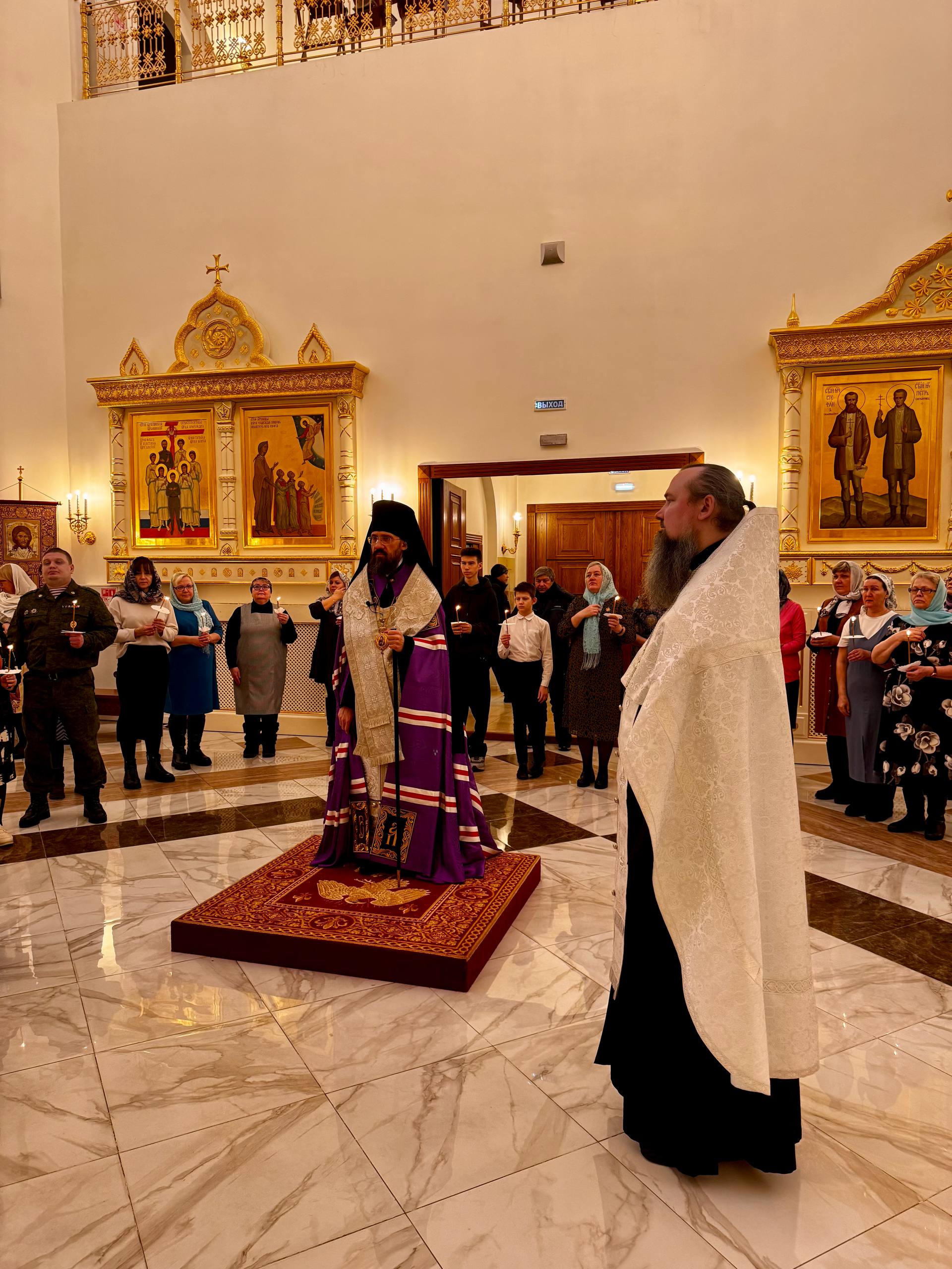 По окончании молебного пения епископ Агафангел обратился к участникам богослужения с архипастырским словом и окропил верующих святой водой.