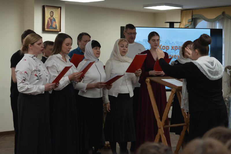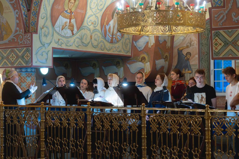 В конференц-зале храма был организован концерт, посвященный престольному празднику, на котором прозвучал ряд богослужебных церковных песнопений в исполнении приходского хора.
