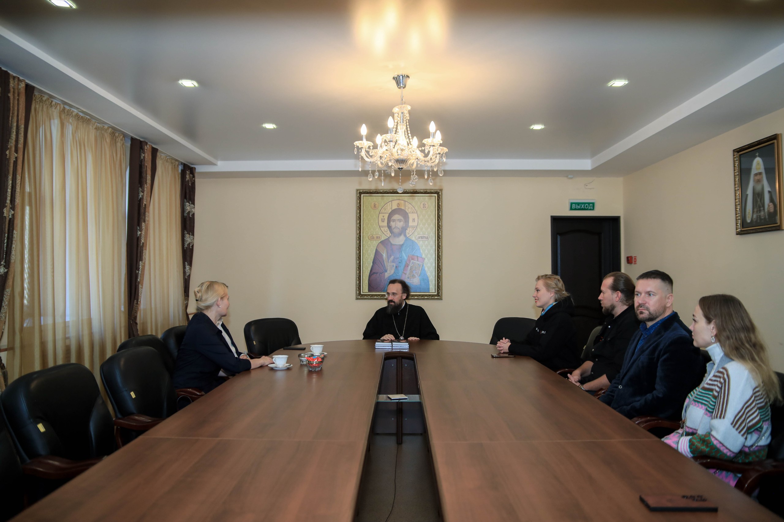 Во встрече с Управляющим Норильской епархией приняли участие: соучредитель Фонда «Русская миссия», доцент Финансового университета при Правительстве РФ, автор фильма «Бог на войне» Даниил Александрович Щипков; директор Благотворительно фонда «Русская миссия» Наталья Вячеславовна Щипкова; супруги Сергей Васин и Вероника Николаевна Иващенко, российская телеведущая, актриса театра и кино, ведущая программ телеканалов «Москва 24» и «Спас», лауреат премии Правительства Российской Федерации в области средств массовой информации; военный корреспондент, член Союза писателей России, поэт, композитор, журналист и телеведущий телеканала «Спас» Александр Валентинович Галицкий; учредитель благотворительного фонда в честь святых Царственных Страстотерпцев г. Москвы Галина Александровна Дьяченко.