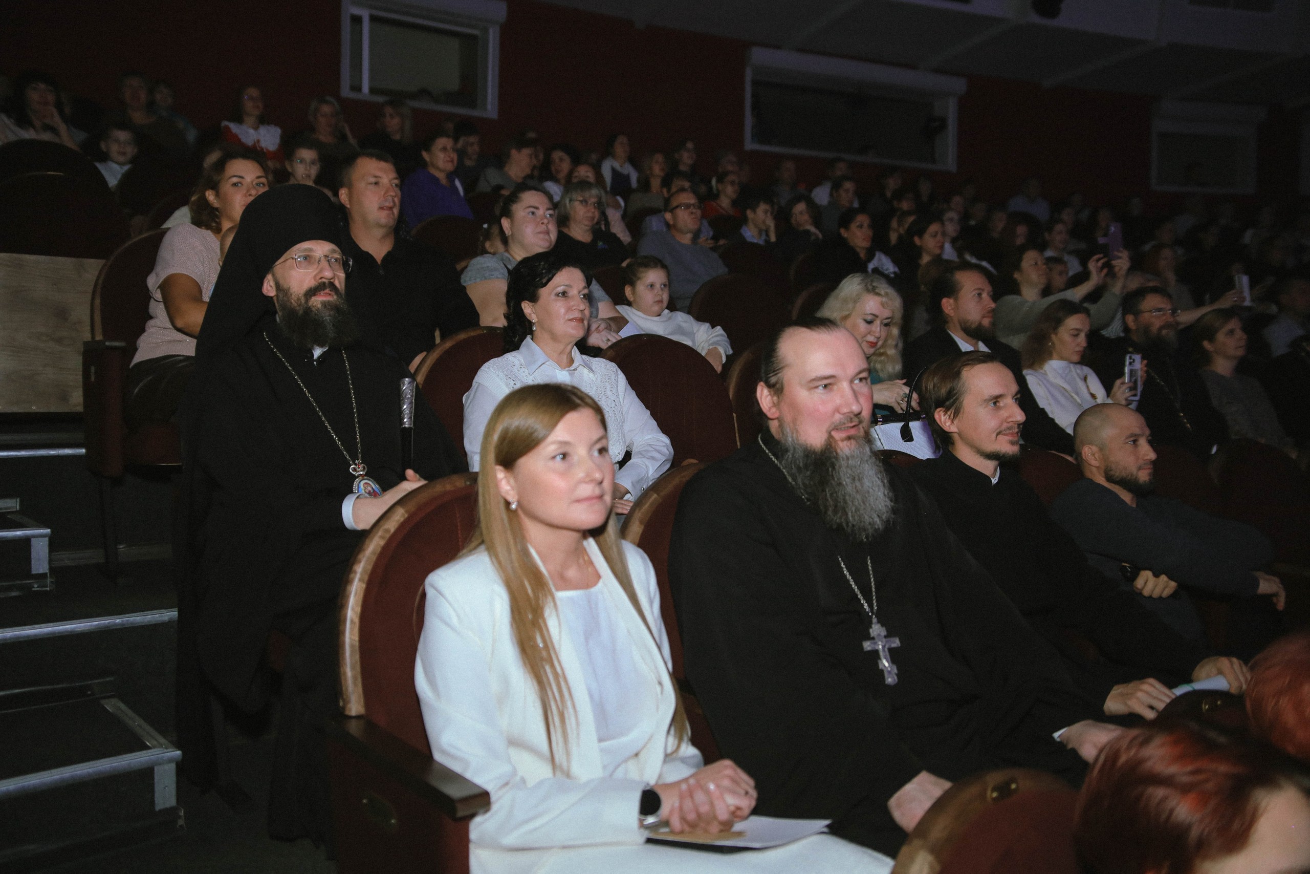 На сцене зала епископ Агафангел и Наталья Коростелева обратились к присутствующим с приветственными словами.