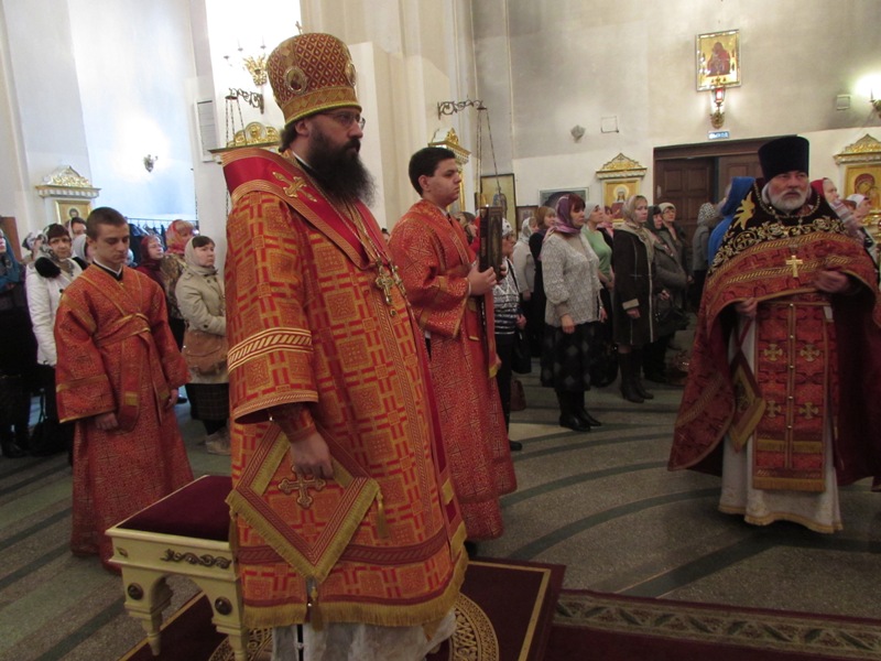 Его Преосвященству сослужили: секретарь Норильской епархии иеромонах Герман (Мельников); благочинный Норильского округа протоиерей Владимир Иванов; штатный клир собора.