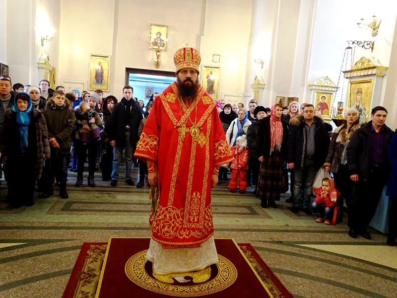 Его Преосвященству сослужили: иеромонах Герман (Мельников) - секретарь Норильской и Туруханской епархии; протоиерей Георгий Ицков – настоятель Свято-Введенского храма города Дудинки, благочинный Таймырского округа; протоиерей Владимир Иванов – благочинный Норильского округа и ключарь Кафедрального собора; иерей Роман Шагиев – штатный клирик Дудинского храма; иерей Сергий Андреев - председатель епархиального отдела социального служения.
