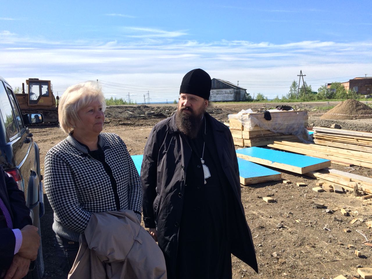 В ходе рабочей поездки Управляющий Норильской епархией посетил строительную площадку и ознакомился с ходом строительства храма в честь Сретения Господа Бога и Спаса нашего Иисуса Христа, которое началось в июне этого года.
