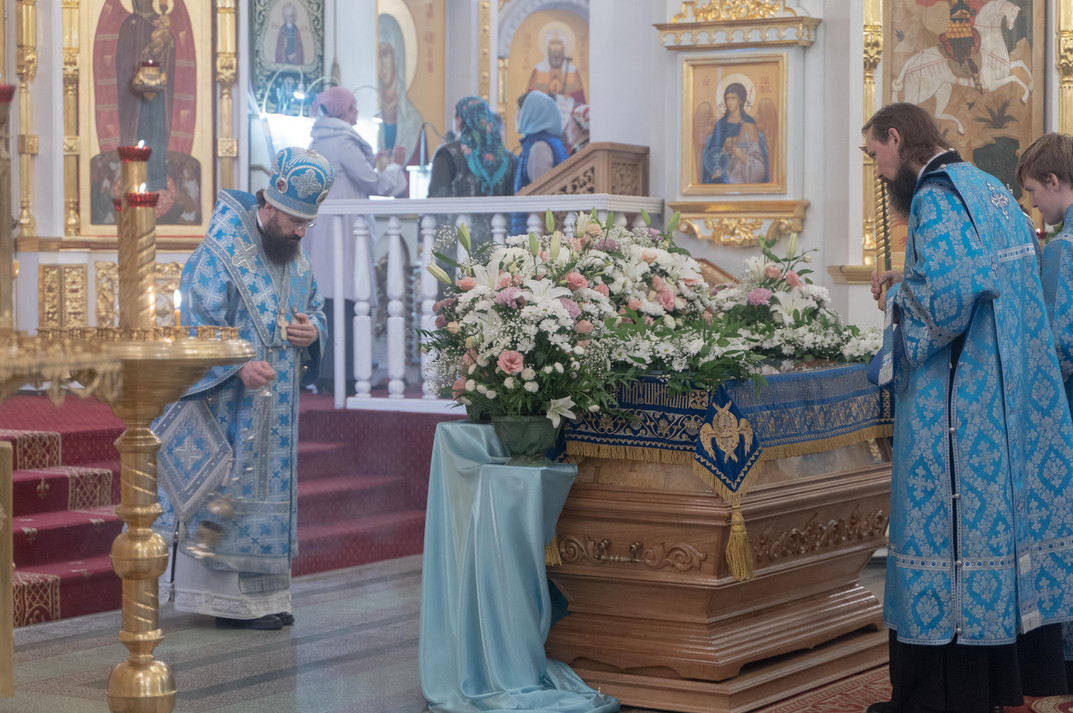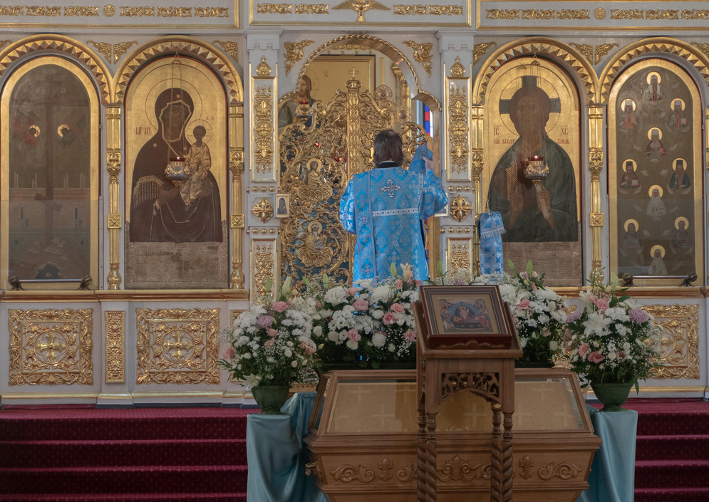 Вечером 27 августа 2021 года, в канун праздника Успения Пресвятой Богородицы, в кафедральном соборе в честь иконы Божией Матери «Всех скорбящих Радость» Преосвященнейший епископ Агафангел совершил праздничное Всенощное бдение и Чин погребения Божией Матери.