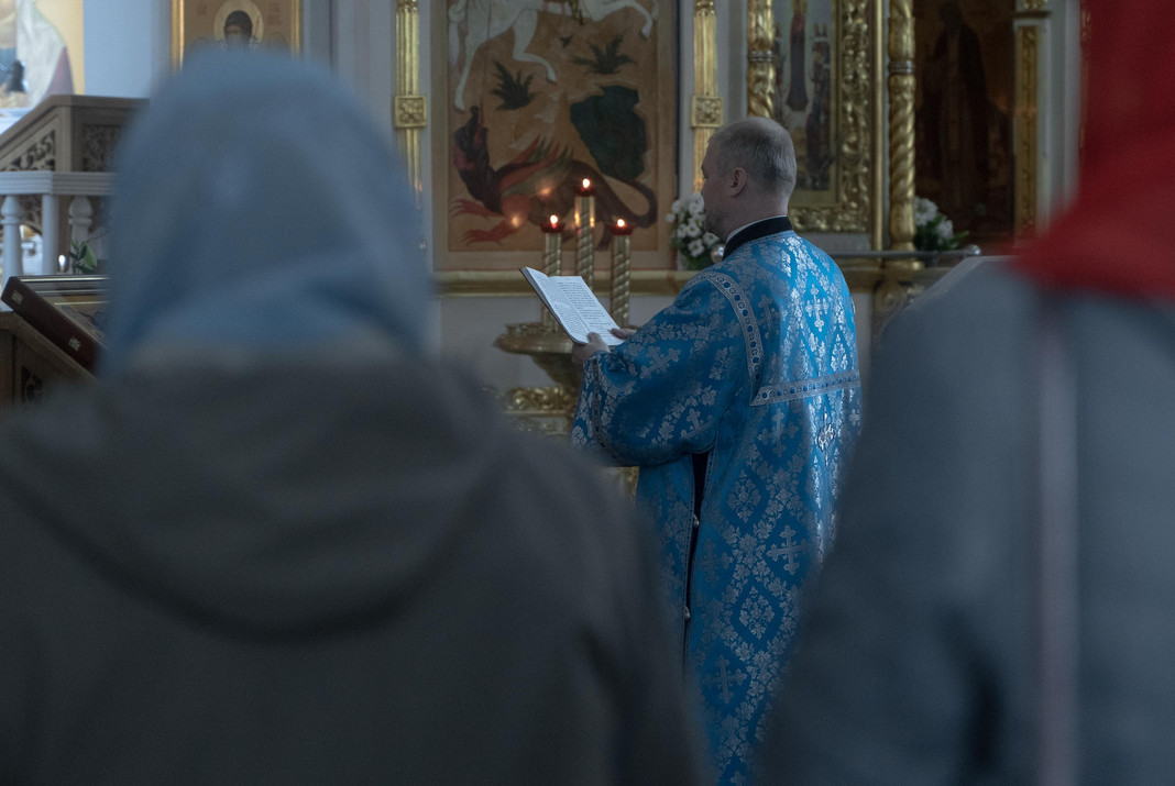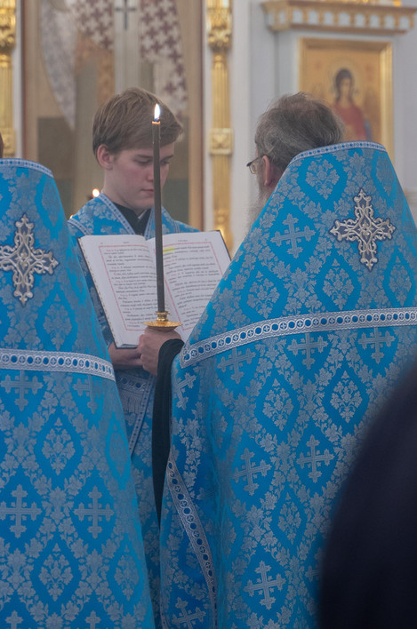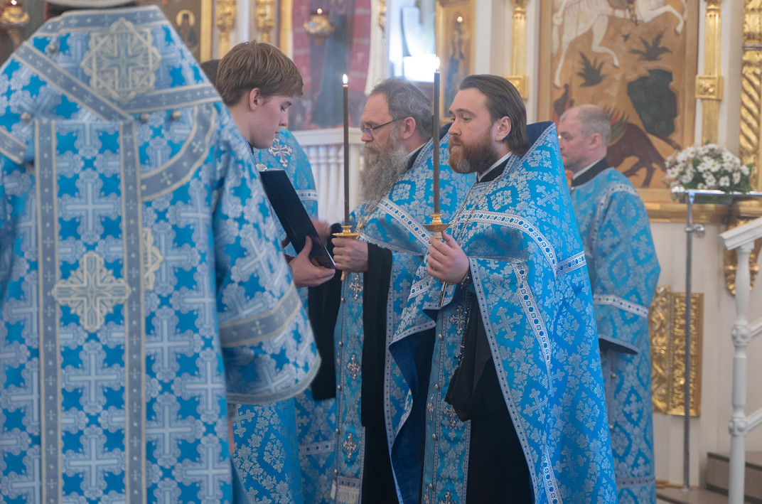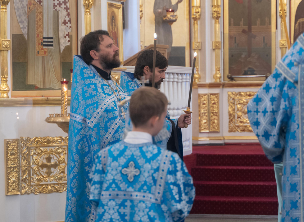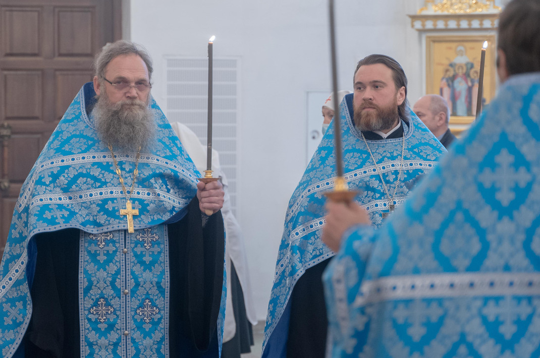 Его Преосвященству сослужили: секретарь Норильской епархии иеромонах Герман (Мельников); духовник Норильской епархии протоиерей Владимир Иванов; настоятель Спасо-Преображенского храма района Кайеркан иерей Александр Попов; благочинный Норильского округа иерей Геннадий Дубинко; штатный клир собора.