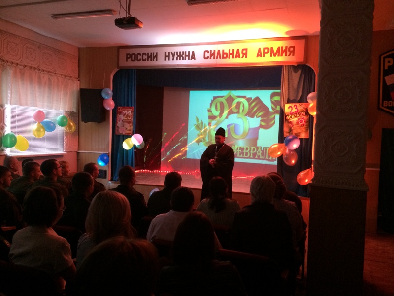 В этот же день, батюшка был приглашен на праздничный концерт в в/ч 40919 г. Норильска войск воздушно-космической обороны Российской Федерации, где горячо поздравил командование и личный состав с Днем Защитника Отечества, отметив огромный вклад в обороноспособность страны воинов космической обороны и передал им архипастырское благословение Его Преосвященства Преосвященнейшего Агафангела, епископа Норильского и Туруханского. Кроме того, состоялась предварительная беседа с командиром части майором Роговым С.А. о подготовке строительства на территории части православной часовни.