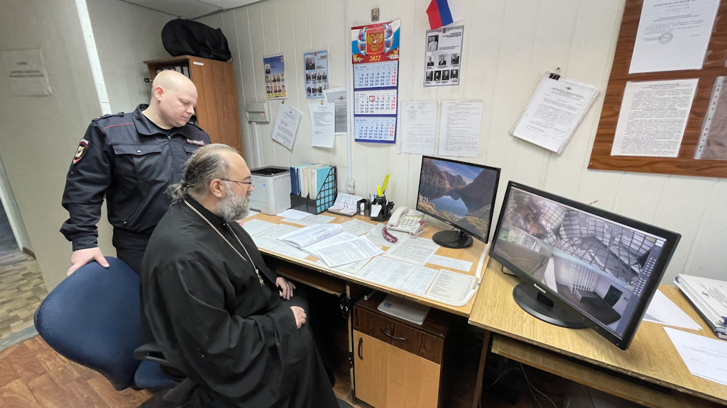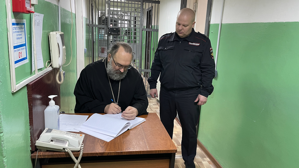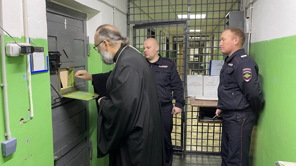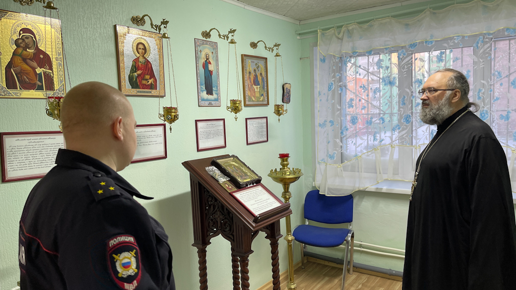 Также состоялась краткая беседа священника с заключёнными, содержащимися в изоляторе временного содержания. Священник вручил заключённым образы Спаса Нерукотворного, а также оставил запись об осмотре помещения изолятора временного содержания.