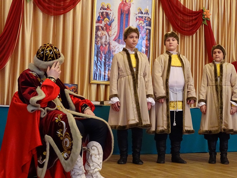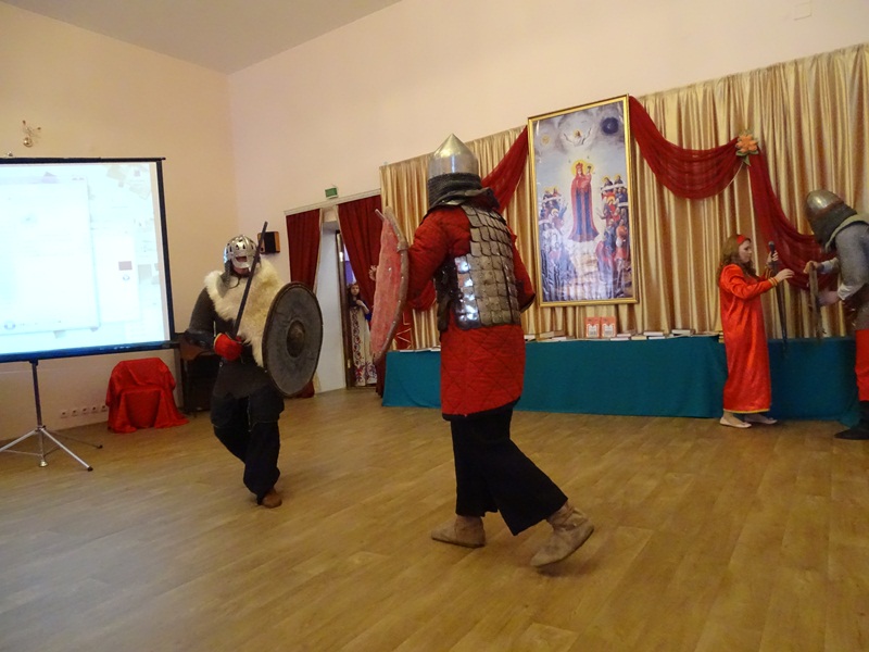 Ребята своими силами представили художественно-литературную композицию, повествующую о принятии Русью крещения. Выступающие мастерски смогли показать дохристианскую Русь и выбор веры князем Владимиром.