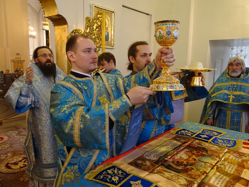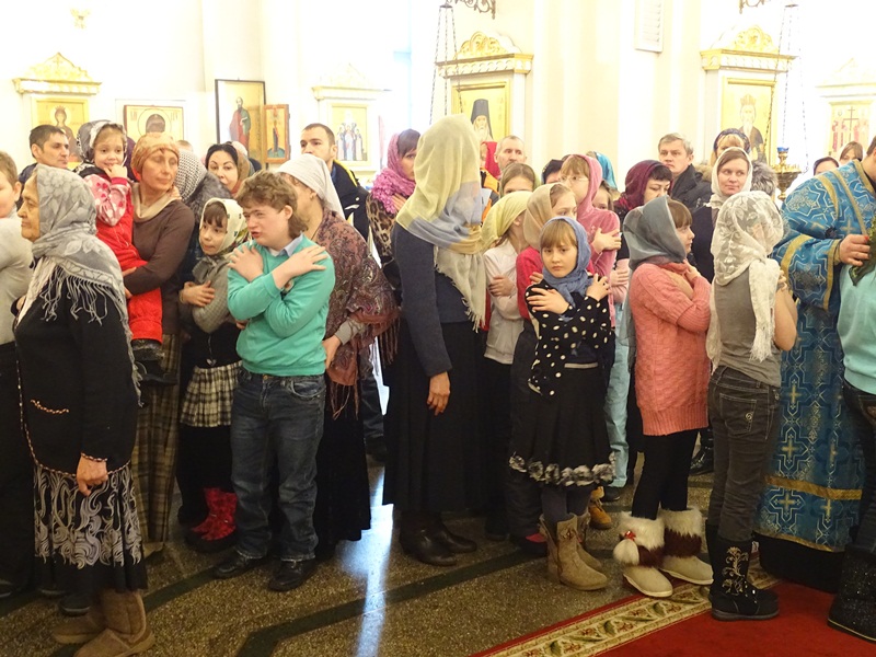 За богослужением присутствовали многочисленные школьники со своими родителями, которые посетили богослужение в рамках изучения в школе Основ Православной культуры. Многие из них причастились Святых Христовых Тайн