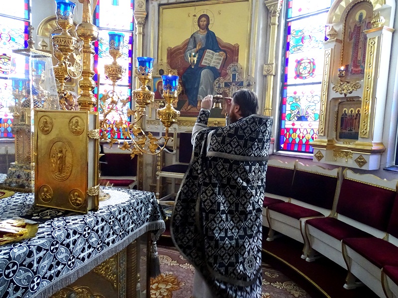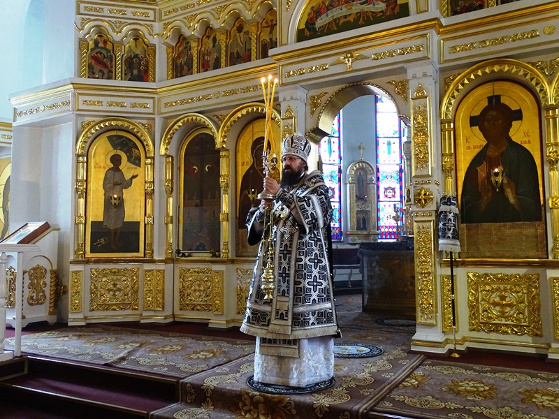 По сугубой ектении Владыка с духовенством и молящимися в храме вознесли молитву о мире на Украине.