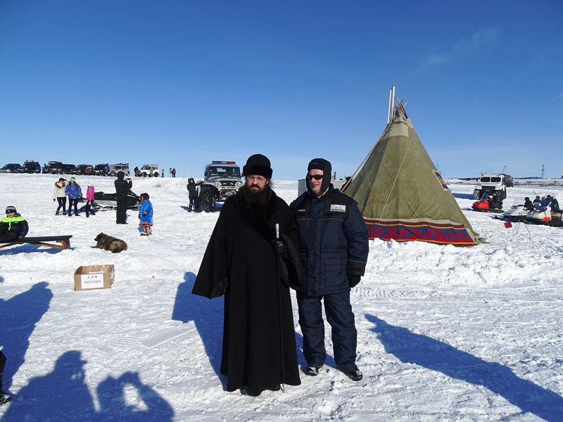 Его Преосвященство сопровождали: секретарь Норильской епархии иеромонах Герман (Мельников) и благочинный Таймырского округа протоиерей Георгий Ицков.