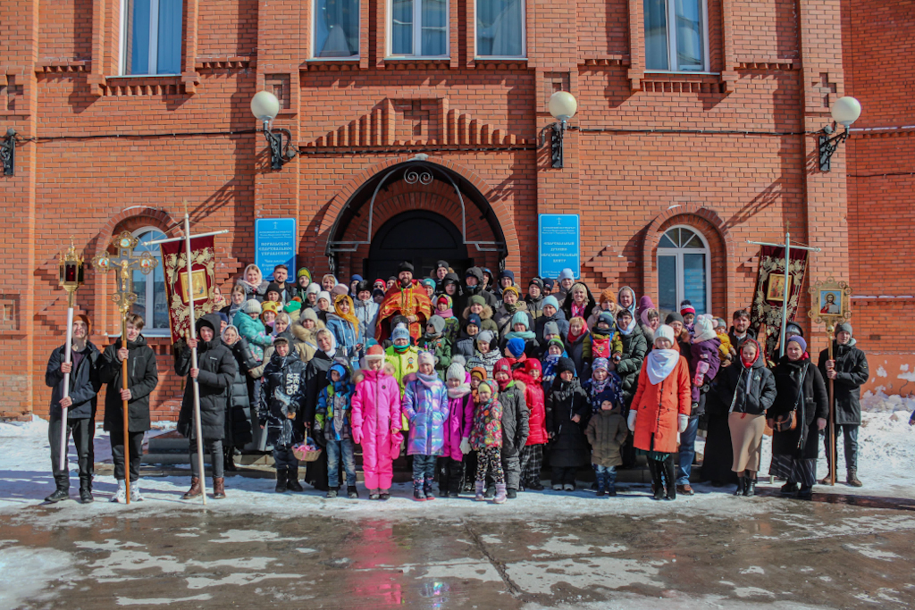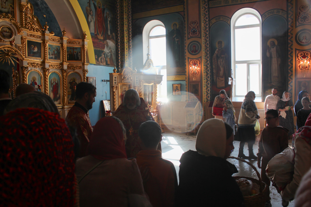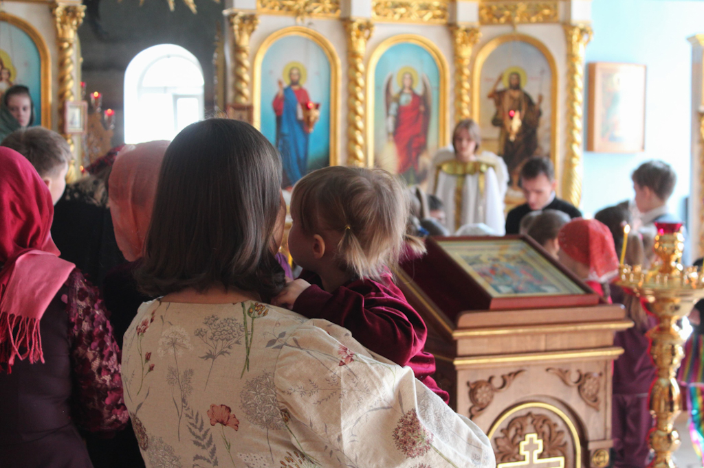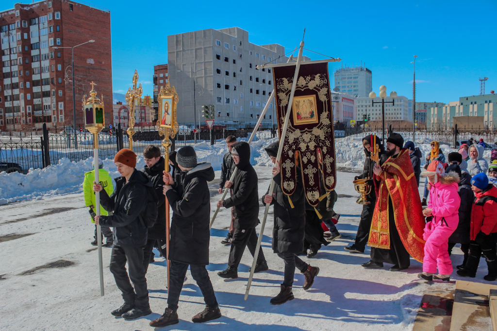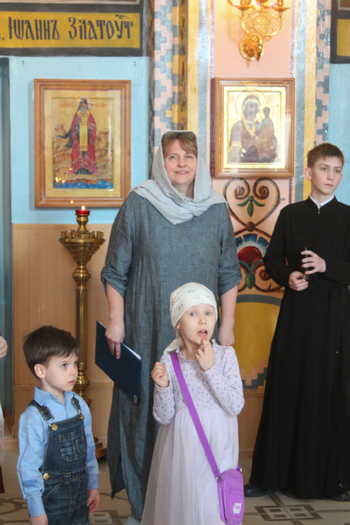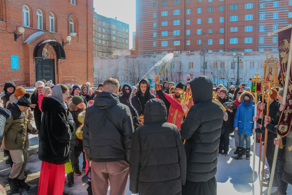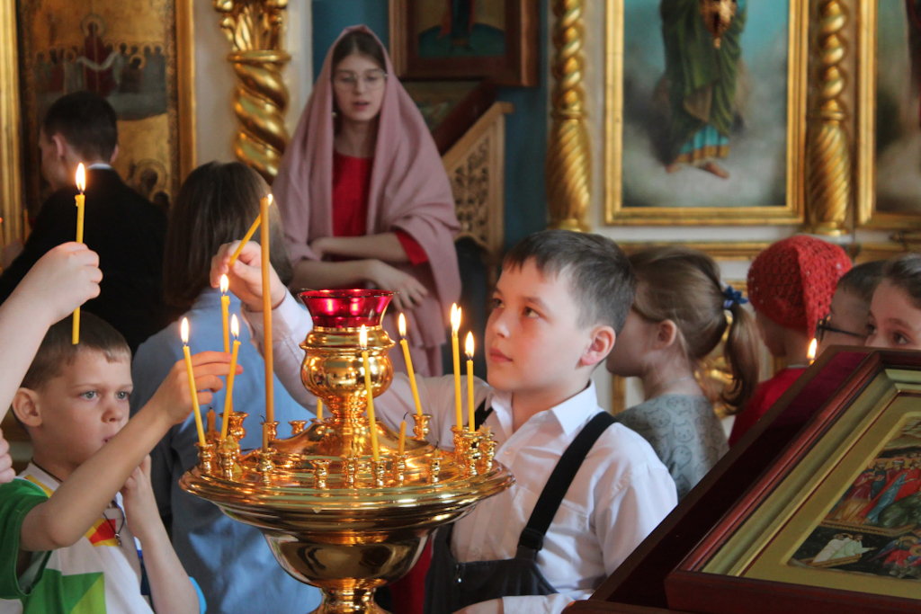 Перед началом мероприятий педагоги, учащиеся воскресных школ и их родители молились за Божественной литургией в домовом храме Рождества Иоанна Предтечи при Норильском епархиальном управлении.