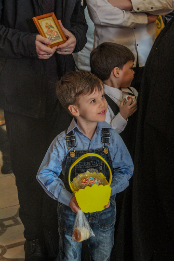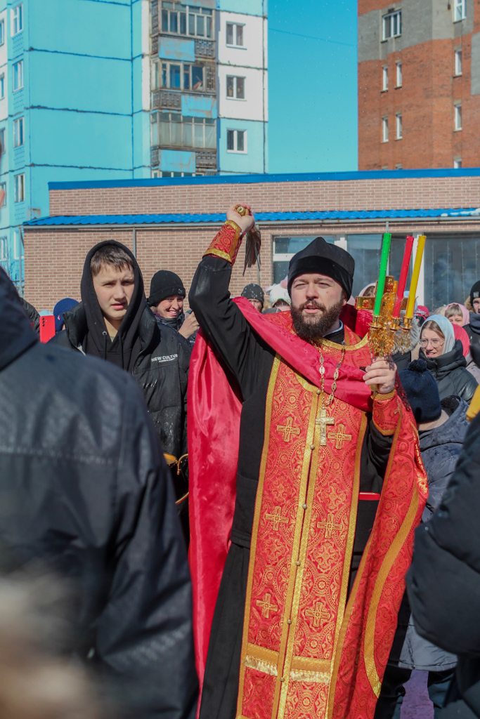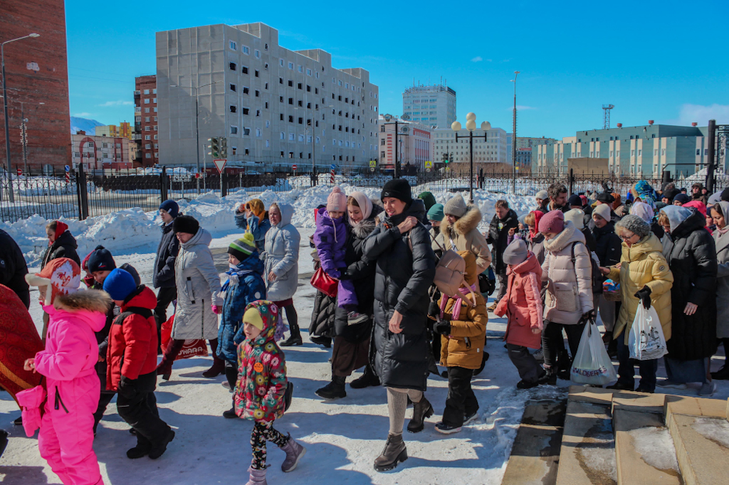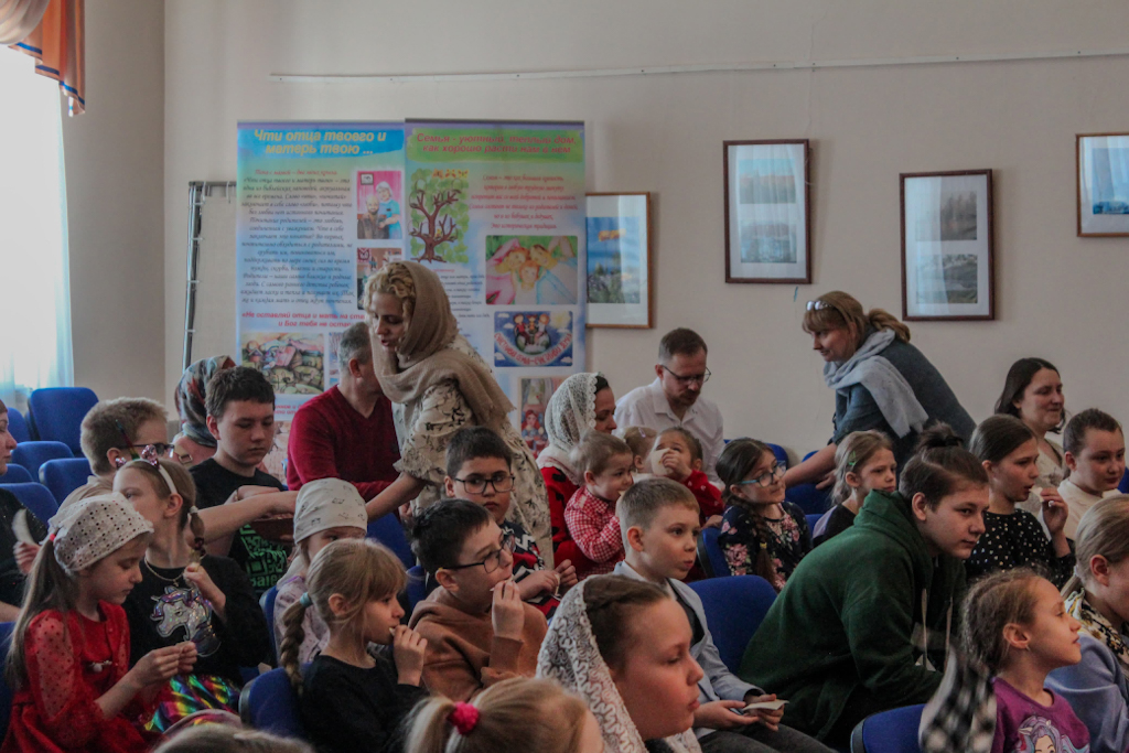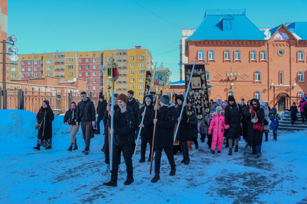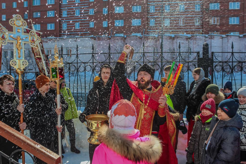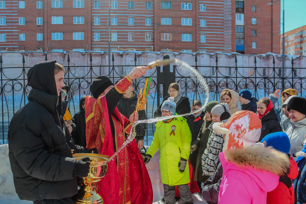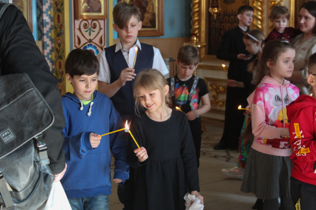 Перед началом мероприятий педагоги, учащиеся воскресных школ и их родители молились за Божественной литургией в домовом храме Рождества Иоанна Предтечи при Норильском епархиальном управлении.