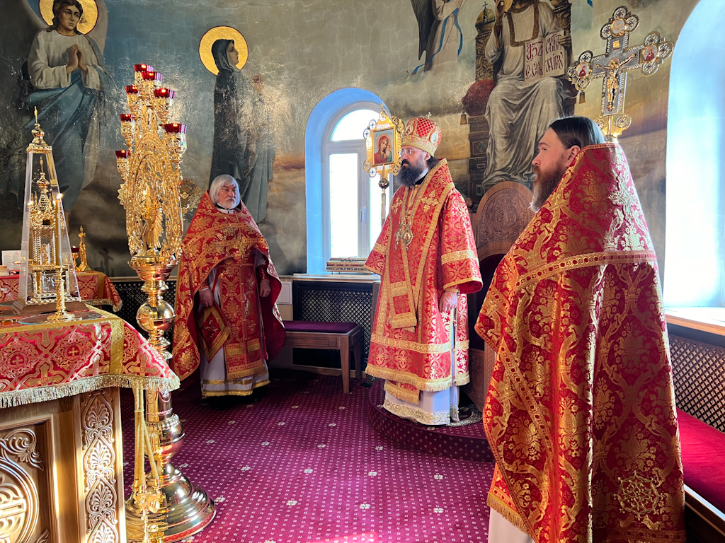 Его Преосвященству сослужили секретарь Норильского епархиального управления, настоятель кафедрального собора иконы Божией Матери «Всех скорбящих Радость» города Норильска иеромонах Герман (Мельников) и духовник Норильской епархии протоиерей Владимир Иванов.
