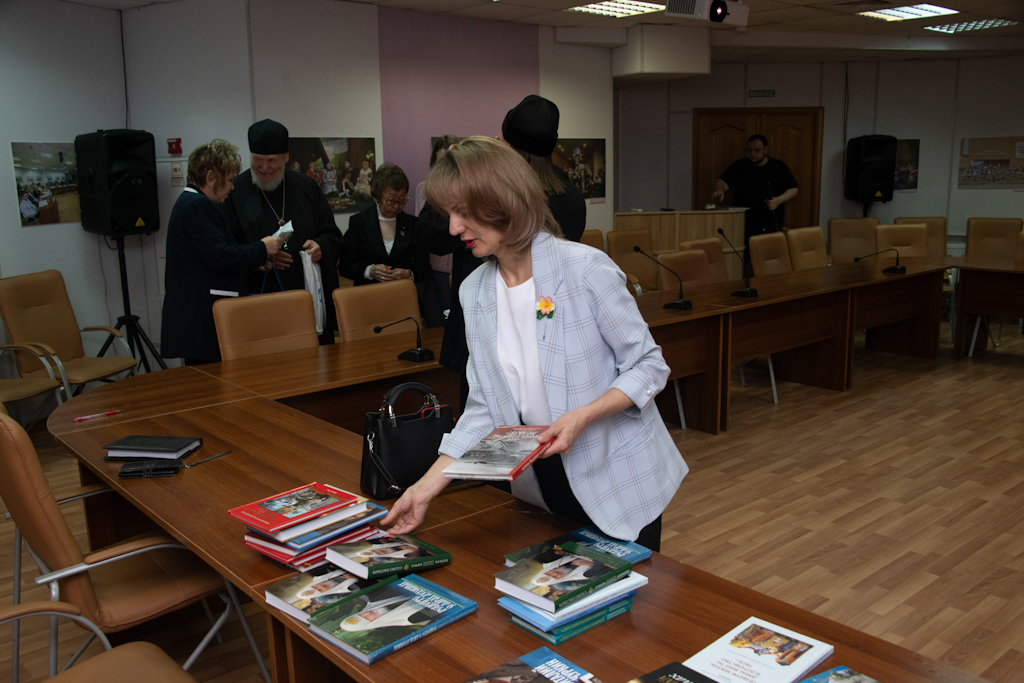 Затем в конференц-зале Музея состоялась презентация книг Издательства Московской Патриархии. Перед началом мероприятия с приветственным словом к гостям и участникам мероприятий обратился епископ Норильский и Туруханский Агафангел. Епископ Балашихинский и Орехово-Зуевский Николай приветствовал собравшихся участников и рассказал о деятельности Издательства Московской Патриархии, а также представил ряд книжных изданий и православной литературы, среди которых документальные, художественные, исторические, научные, богословские и богослужебные издания.
