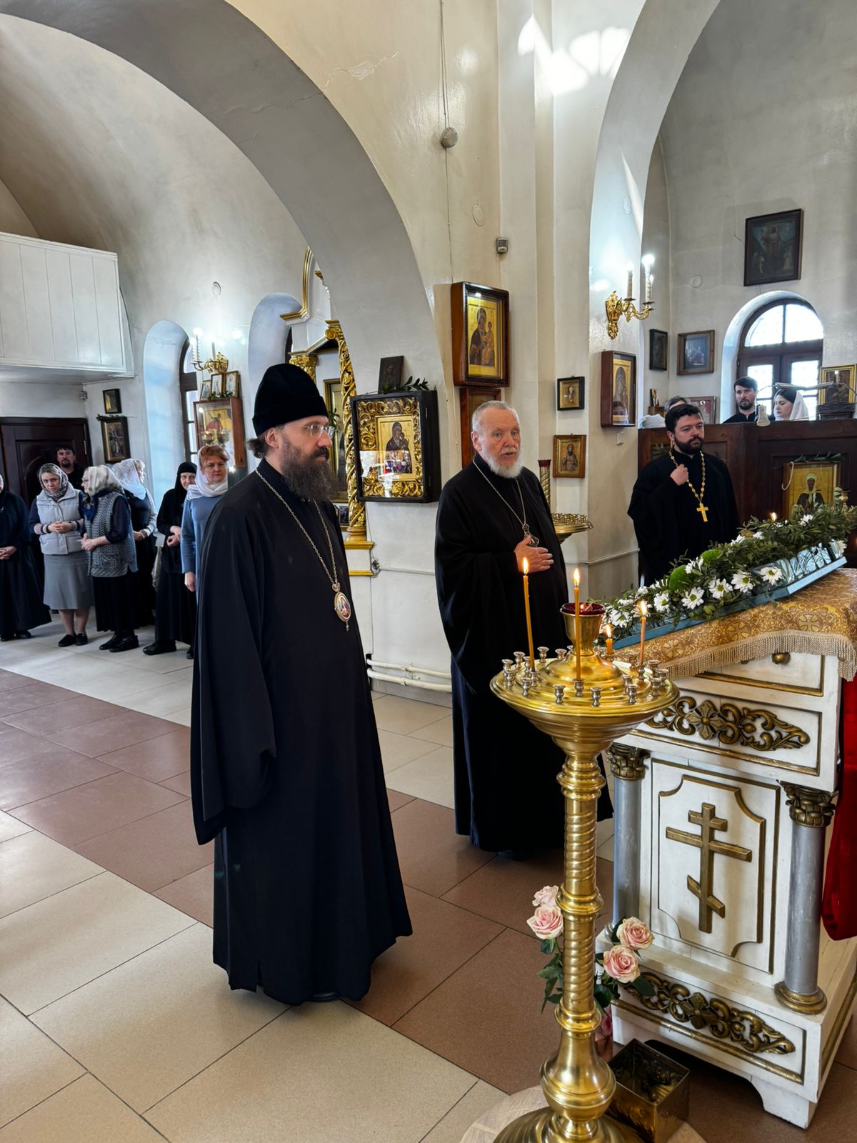 Далее делегация посетила храм Введения во храм Пресвятой Богородицы в г. Дудинке. Епископ Николай и епископ Агафангел поклонились святыням храма и пообщались с прихожанами.