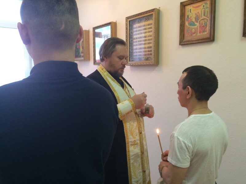 Перед началом Литургии, Святое Крещение приняли двое осужденных. За Божественной Литургией Святого Василия Великого молились, как заключенные, так и сотрудники исправительного учреждения. В этот день приобщиться святых Христовых Тайн смогло более двадцати человек.