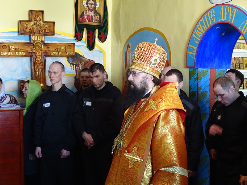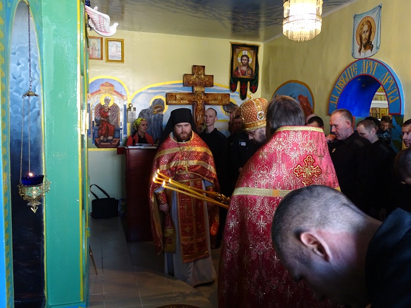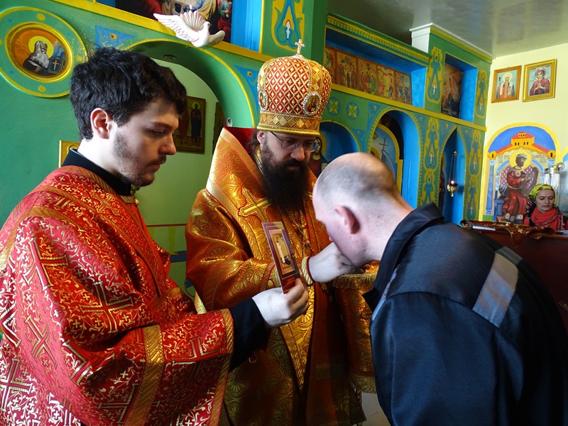 После службы Архипастырь обратился к собравшимся со словами проповеди и подарил осужденным иконки святого мученика Василия Мангазейского. Заключенные прихожане принесли в дар Владыке резную шкатулку, сделанную в виде Святого Евангелия, которую изготовили собственными силами.