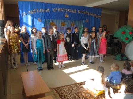 Восторженные зрители не скупились на аплодисменты. Пасхальный утренник – общая работа всего прихода. В подготовке и в проведении праздника принимали участие, как дети, так и взрослые.