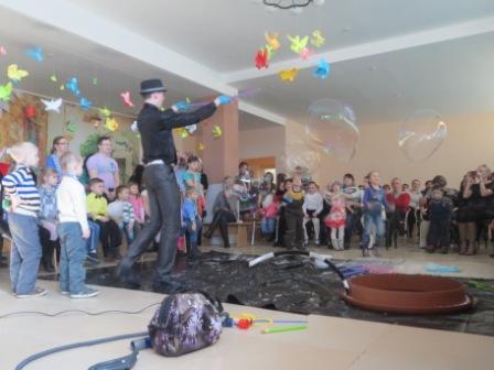 19 апреля в Фомину Неделю состоялся пасхальный утренник в Талнахе. После Божественной литургии прихожане собрались вместе, чтобы разделить радость о воскресшем Христе Спасителе. В праздничной программе было рассказано об истории, сущности праздника Пасхи и о православных традициях празднования. Утренник открылся небольшим концертом, подготовленным воспитанниками воскресной школы. Учащиеся представили вниманию зрителей пасхальные стихи, песни. Продолжился утренник спектаклем "Пасхальный колобок", подготовленный взрослыми прихожанами. Завершило утренник представление мыльных пузырей.