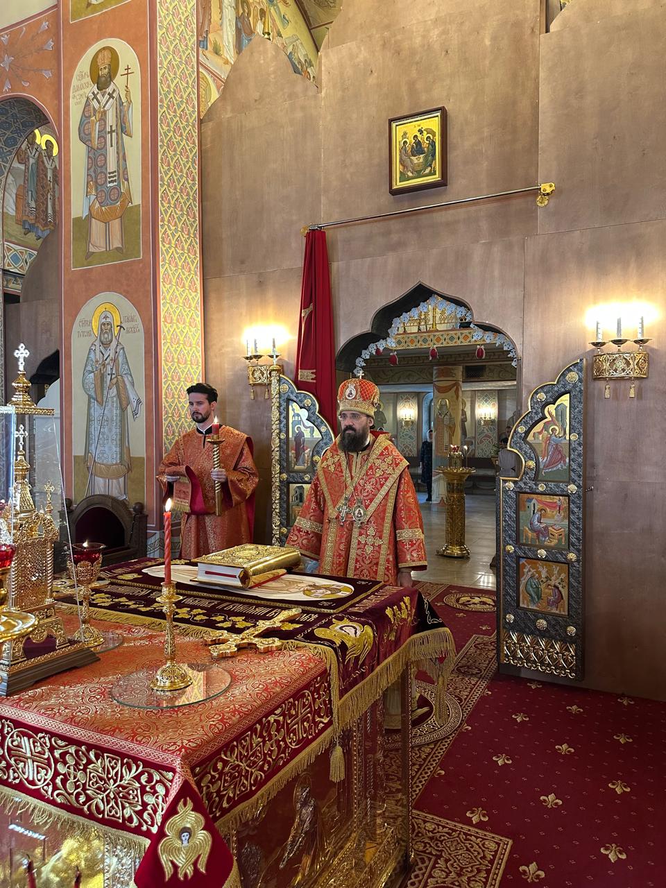 Его Преосвященству сослужили: избранный и нареченный во епископа Нарьян-Марского и Мезенского архимандрит Софроний (Семенов); секретарь Норильского епархиального управления, настоятель кафедрального собора иконы Божией Матери «Всех скорбящих Радость» г. Норильска иеромонах Герман (Мельников); благочинный Норильского округа, настоятель храма новомучеников и исповедников Церкви Русской в г. Норильске иерей Геннадий Дубинко; помощник руководителя епархиального отдела по социальному служению и церковной благотворительности иерей Никита Челядинов; духовенство города Норильска.