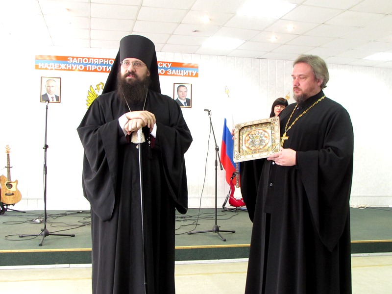 В дар, организуемой при подразделении православной часовни, Правящий Архиерей Норильской епархии, преподнес икону Божией Матери «Неопалимая Купина», которая является небесной покровительницей пожарных частей Российской федерации. В ответном слове, начальник Отряда, подполковник внутренней службы Дмитрий Борисович Лиходеев горячо поблагодарил епископа Агафангела и всех священнослужителей епархии и выразил общее мнение личного состава, касательно той особо важной роли, что играет вера в Бога для тех, кто, неся свою службу, постоянно рискует своей жизнью.