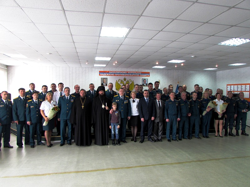 30 апреля 2015 года в День пожарной охраны России, Его Преосвященство Преосвященнейший Агафангел епископ Норильский и Туруханский посетил «7 Отряд противопожарной службы по Красноярскому краю» г. Норильска. Именно это подразделение МЧС осуществляет пожарную охрану Норильского промышленного района и его сотрудники непосредственно принимают участие в ликвидации пожаров и техногенных катастроф. Его Преосвященство сопровождали: секретарь Норильской епархии иеромонах Герман (Мельников) и председатель епархиального отдела по взаимодействию с правоохранительными структурами протоиерей Димитрий Харцыз. В приветственном слове, по случаю праздника, Преосвященнейший Агафангел преподал огнеборцам свое архипастырское благословение и пожелал помощи Божией в их нелёгком, но таком нужном и почетном служении на благо России.