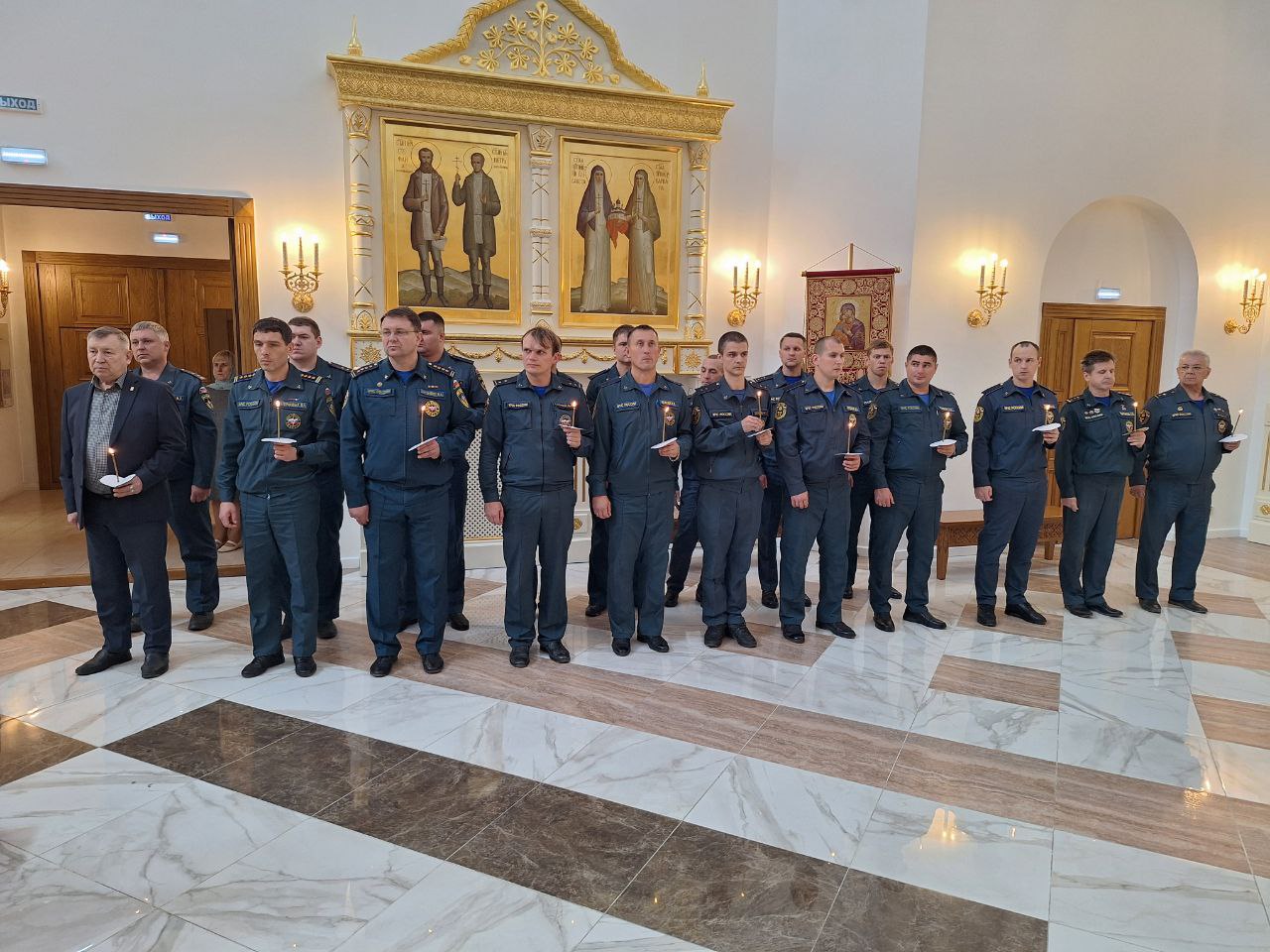 На праздничном молебне присутствовали командир отряда филиала «Норильский ВГСО» ФГУП «ВГСЧ» А.Г. Сабиров; заместители командира отряда И.А. Сугоняко и В.Н. Терновых; личный состав Талнахского военизированного горноспасательного взвода.