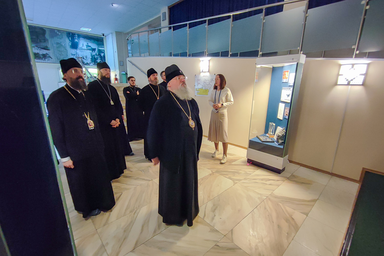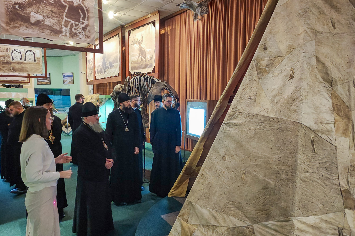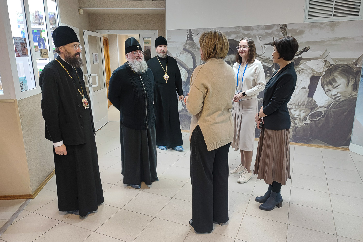 Затем делегация посетила Таймырский краеведческий музей. Архиереев встретила исполняющая обязанности заместителя Главы Таймырского Долгано-Ненецкого муниципального района по социальной политике Ирина Валерьевна Губкина.