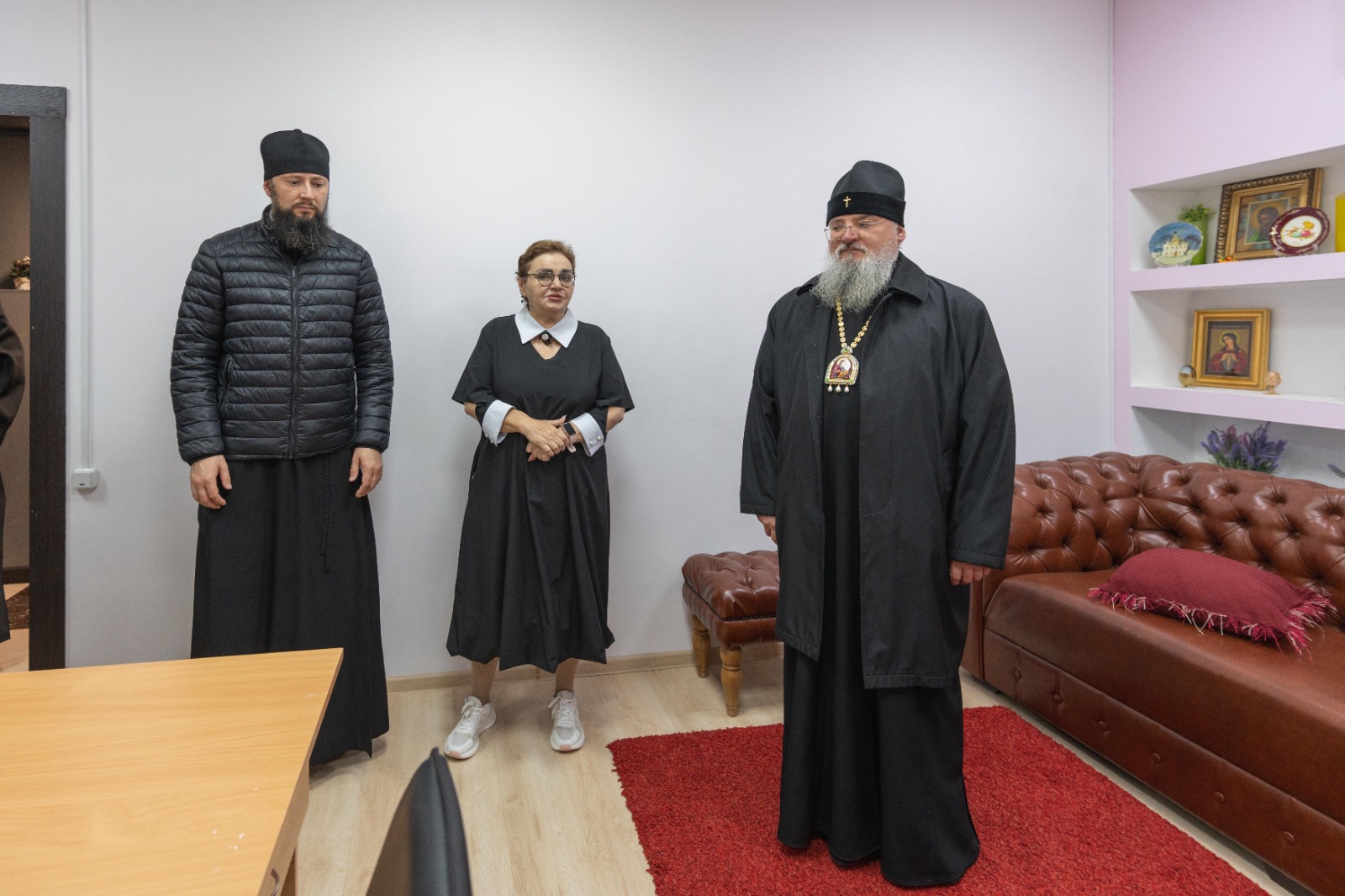 Участники мероприятий посетили православный центр содействия людям в трудной жизненной ситуации «Лествица». В ходе посещения учреждения Архипастыри в сопровождении директора центра Ирины Николаевны Хубецовой осмотрели помещения и ознакомились с адаптацией реабилитационных программ для алкозависимых и наркозависимых.