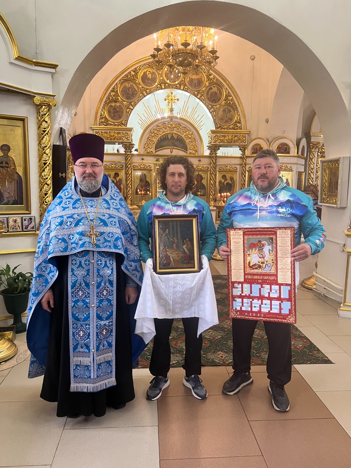 Перед началом морского заплыва благочинный Таймырского округа, настоятель храма Введения во храм Пресвятой Богородицы протоиерей Георгий Ицков совершил молебен в Введенком храме г. Дудинки и окропил святой водой участников мероприятий.