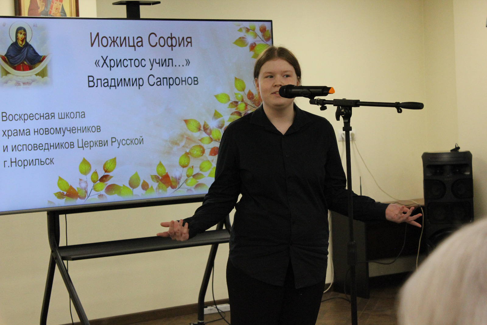 18 октября 2025 года по благословению Преосвященнейшего Агафангела, епископа Норильского и Туруханского, в актовом зале храма новомучеников и исповедников Церкви Русской города Норильска состоялся конкурс чтецов духовной поэзии «Под Покровом Пресвятой Богородицы» среди воспитанников воскресных школ Норильской епархии, организованный отделом религиозного образования и катехизации Норильской епархии.