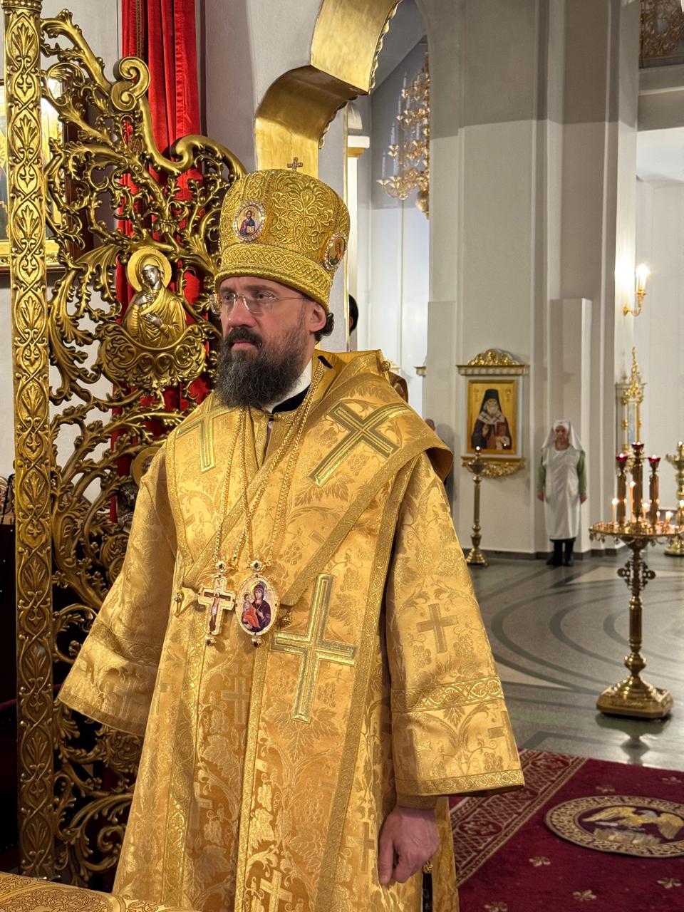 На сугубой ектении были вознесены особые прошения, Архипастырь прочитал молитву о Святой Руси.