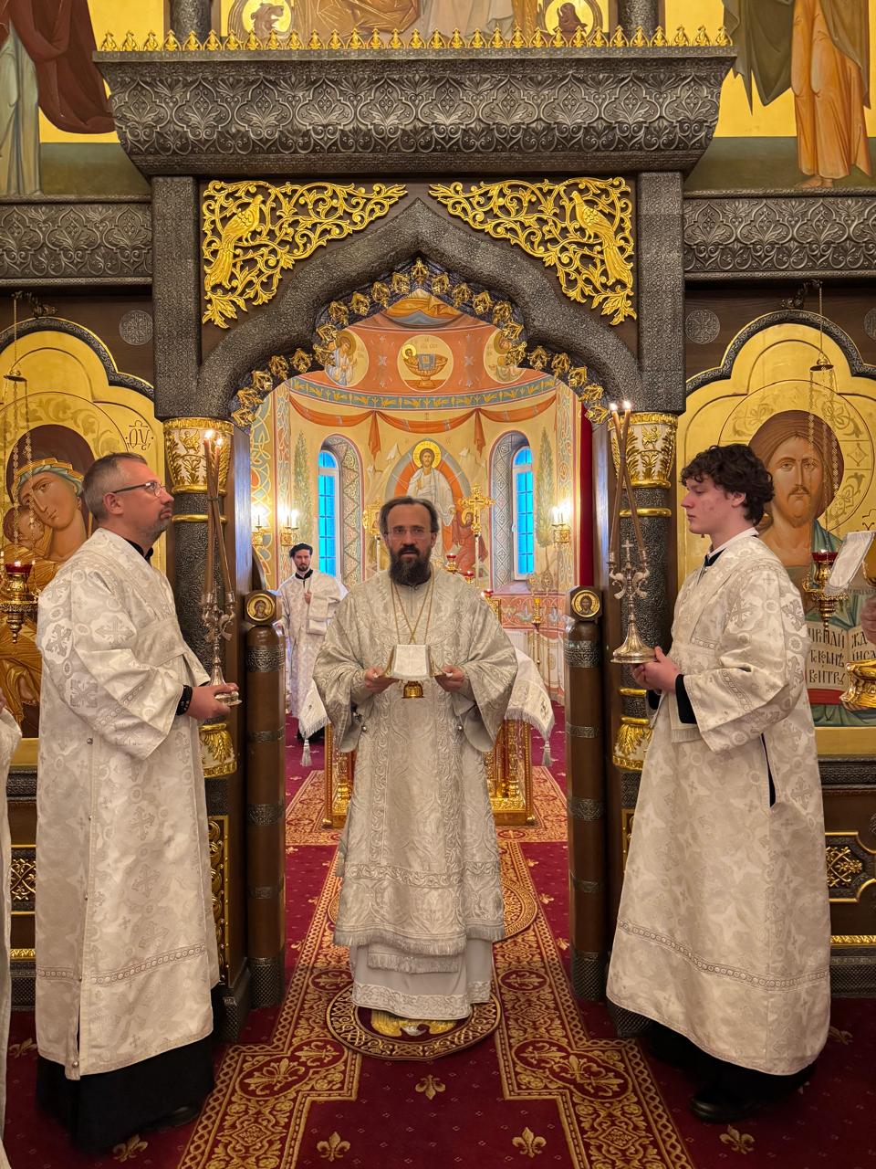 Его Преосвященству сослужили благочинный Норильского округа, настоятель храма новомучеников и исповедников Церкви Русской г. Норильска иерей Геннадий Дубинко и помощник руководителя отдела Норильской епархии по социальному служению и церковной благотворительности, клирик храма иерей Никита Челядинов