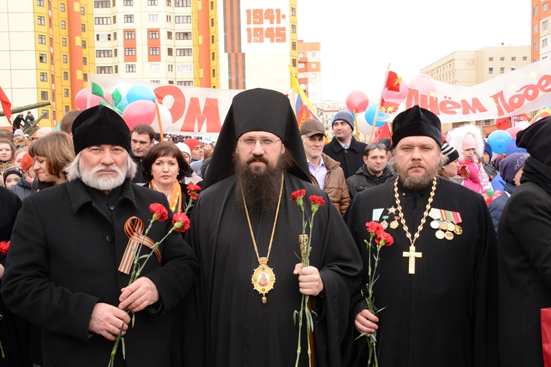 Также церемония возложения цветов к могилам Героев Советского Союза прошла на городском кладбище. Здесь Архипастырь совместно с духовенством совершил заупокойную литию, помолившись о всех положивших свою жизнь защищая нашу Родину.