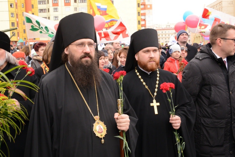Присутствующие почтили память погибших при защите Родины минутой молчания. После залпа почетного караула в небо поднялись десятки голубей и сотни воздушных шаров. Владыка и сопровождавшее его духовенство возложили цветы к памятнику.