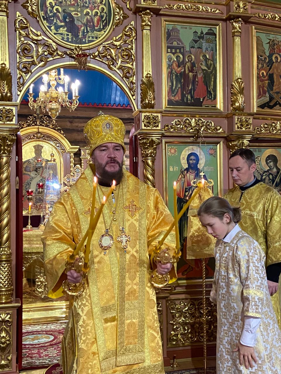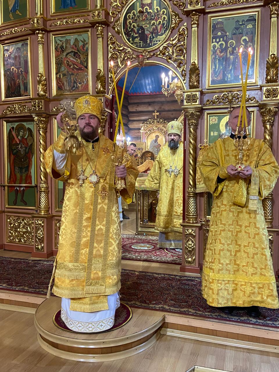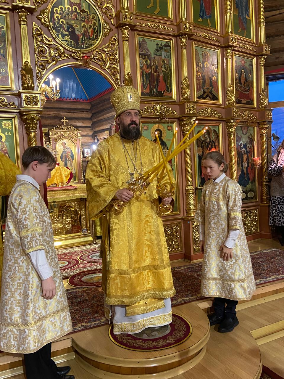 За Литургией архиереям сослужили руководитель отдела религиозного образования и катехизации Нарьян-Марской епархии иерей Александр Симора и руководитель отдела Норильской епархии по тюремному служению иерей Александр Попов.