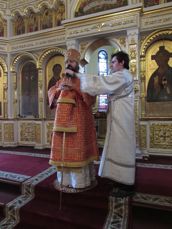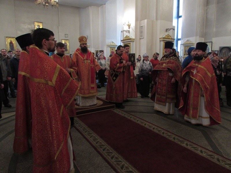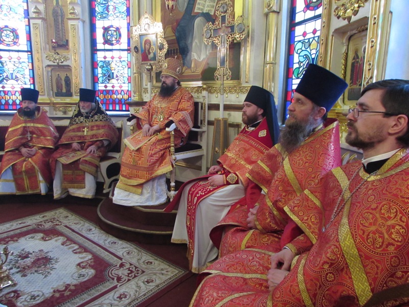Его Преосвященству сослужили: секретарь Норильской епархии иеромонах Герман (Мельников); благочинный Норильского округа протоиерей Владимир Иванов; штатный клир собора.