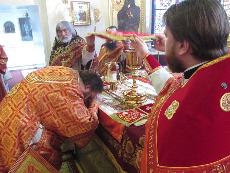 По окончании Божественной литургии епископ Агафангел совершил славление перед ковчегом с мощами Дивеевских святых и прочитал молитву Угодникам Божиим.