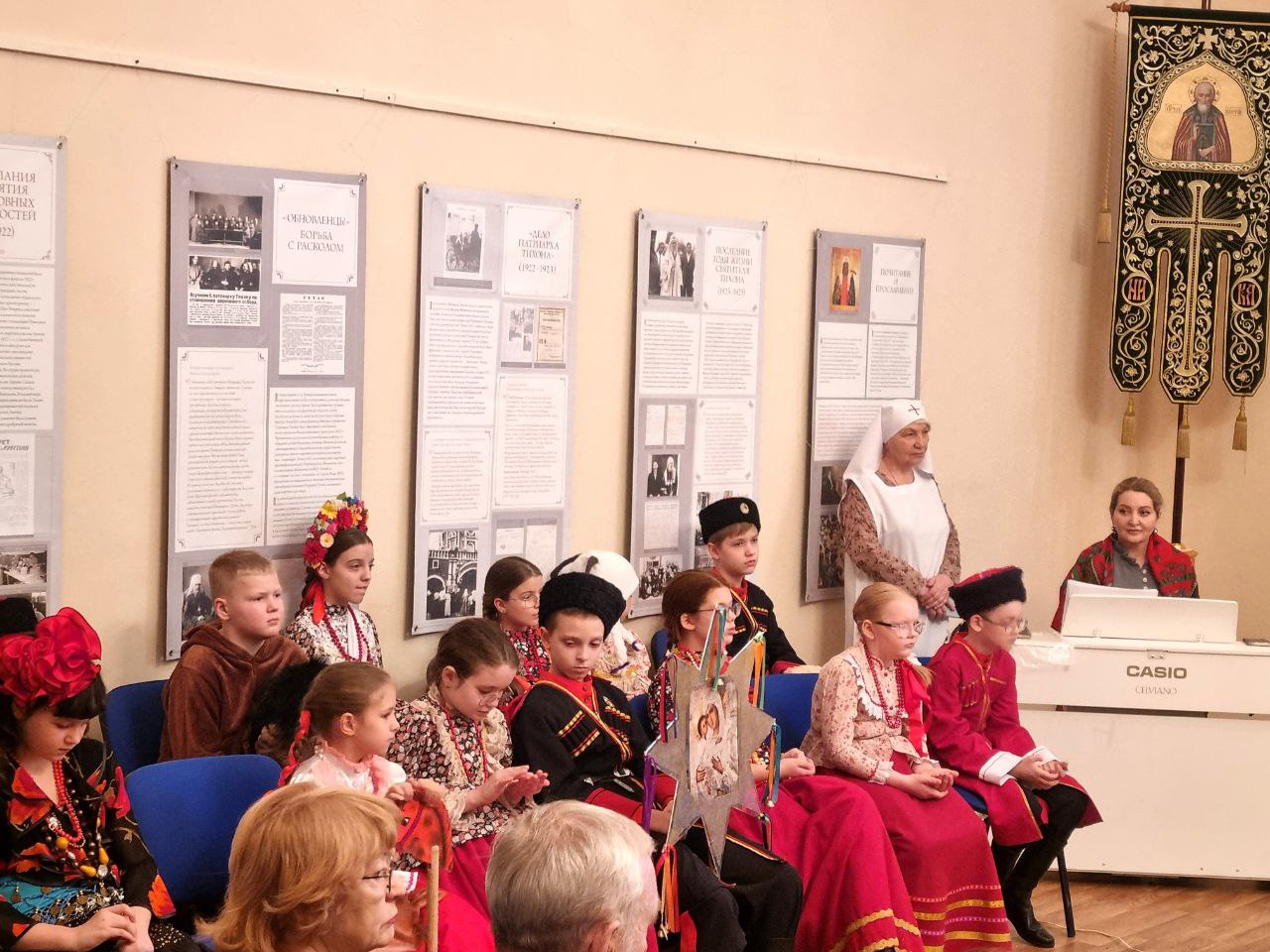 Перед началом постановки организаторы и учащиеся молились за Божественной литургией в кафедральном соборе иконы Божией Матери «Всех скорбящих Радость» г. Норильска.